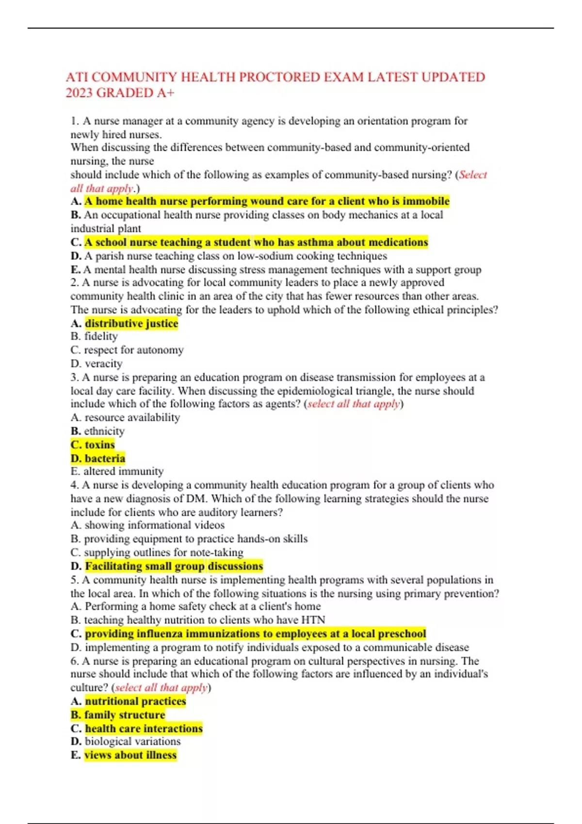 ATI COMMUNITY HEALTH PROCTORED EXAM LATEST UPDATED 2023 GRADED A+