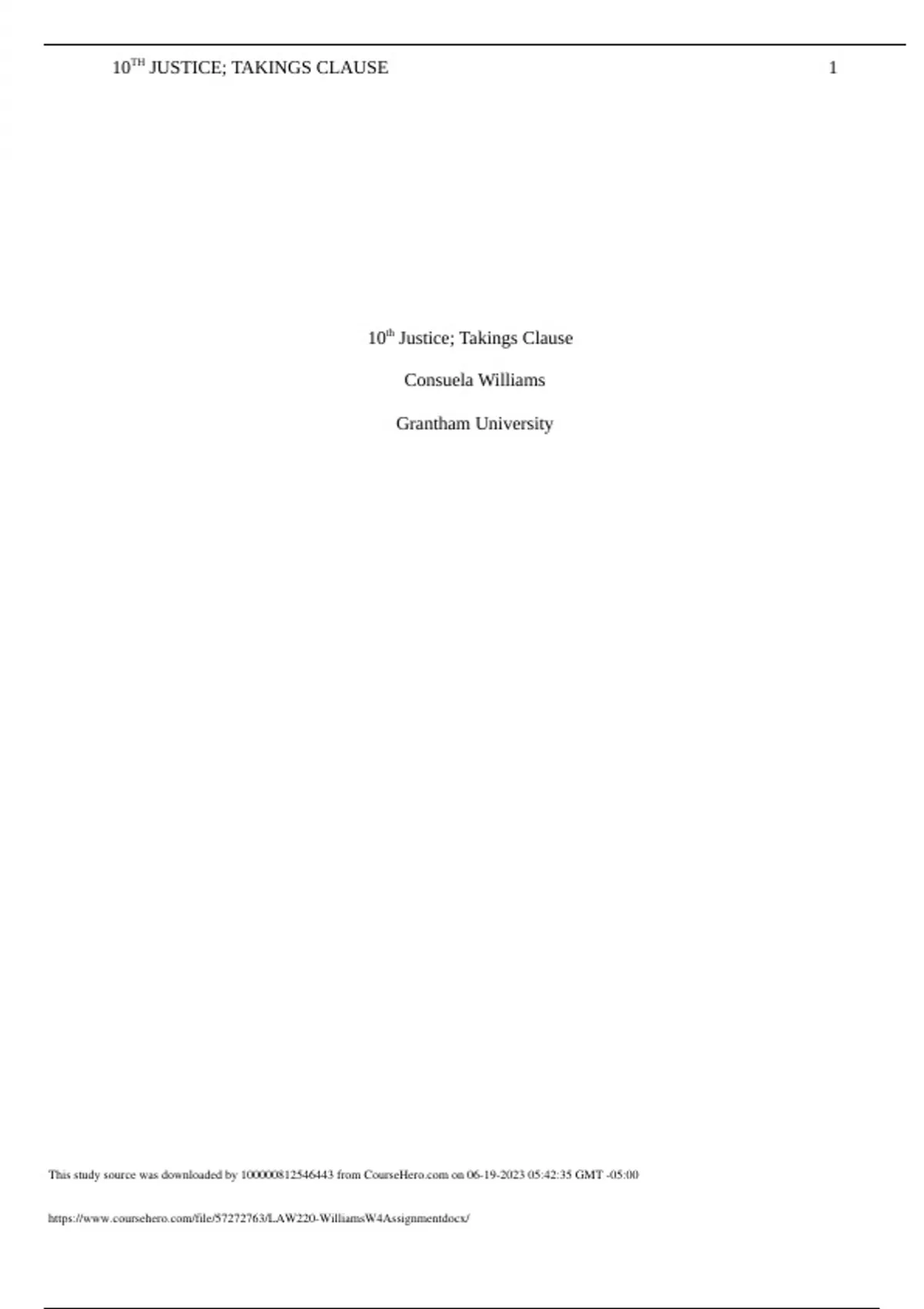 LAW220_WilliamsW4Assignment 10TH JUSTICE; TAKINGS CLAUSE.