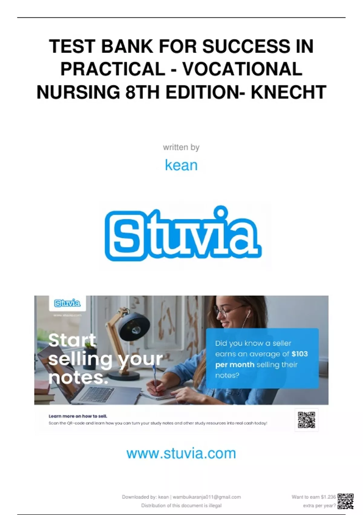 TEST BANK FOR SUCCESS IN PRACTICAL - VOCATIONAL NURSING 8TH EDITION- KNECHT