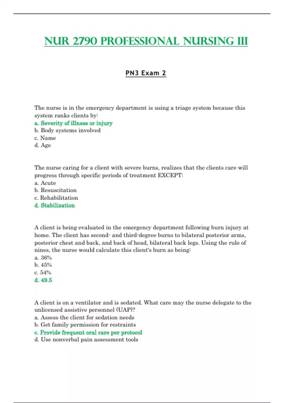 NUR2790 / NUR 2790 Professional Nursing III (PN3) Exam 2 - Rasmussen