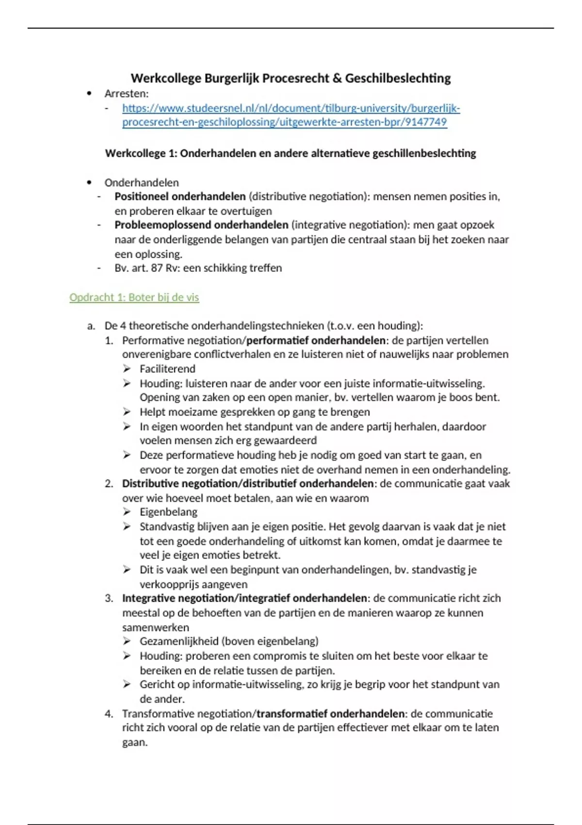 Werkcollege 1: Onderhandelen en andere alternatieve geschillenbeslechting