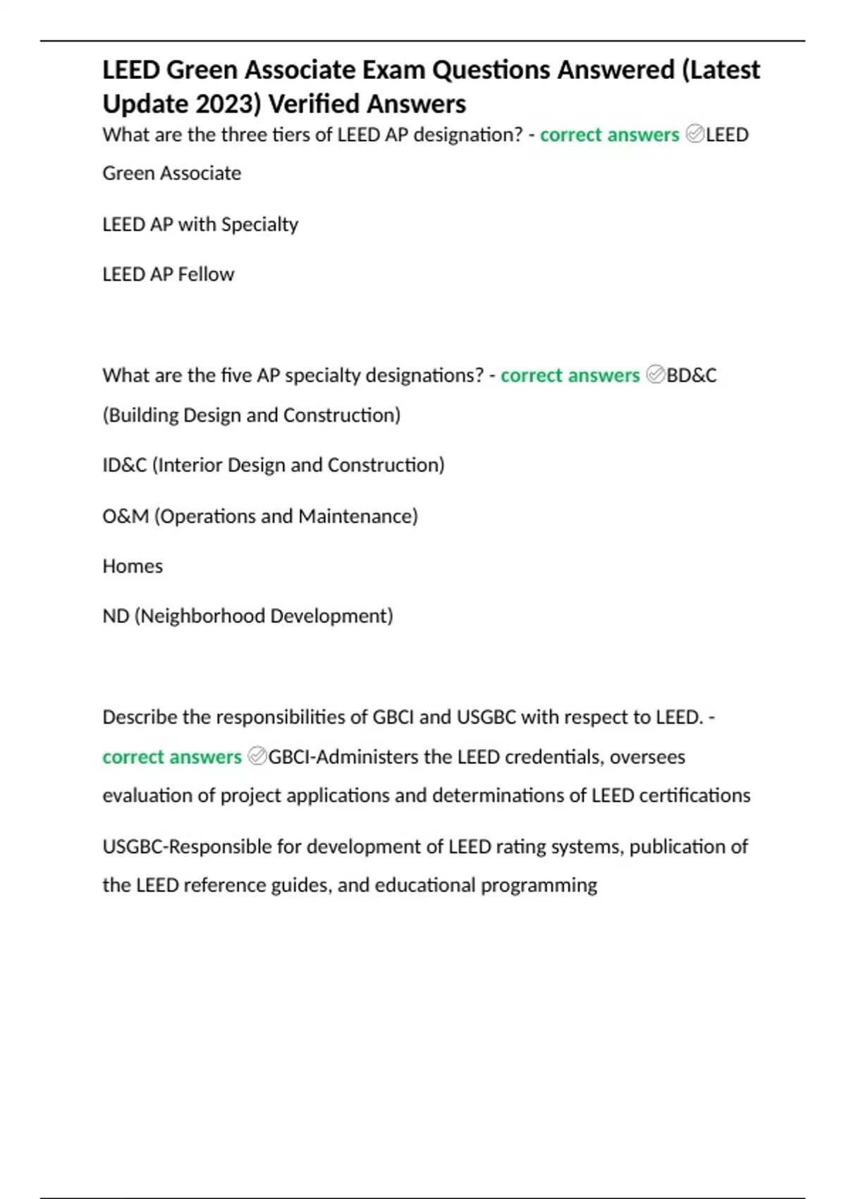 leed green associate exam questions answered late