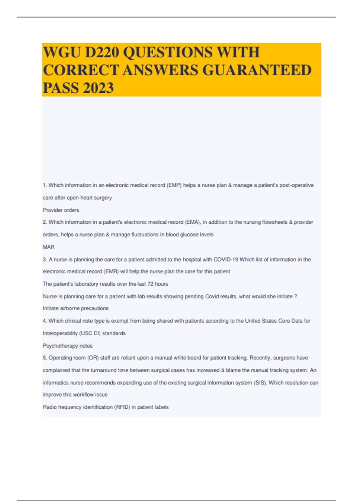 WGU D220 QUESTIONS WITH CORRECT ANSWERS GUARANTEED PASS 2023