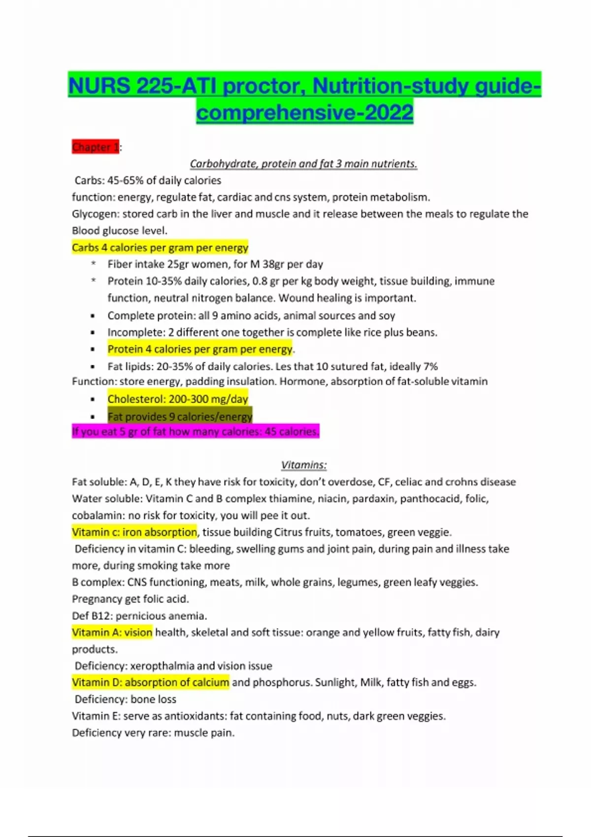This is NURS 225-ATI proctor, Nutrition-study guidecomprehensive-2022 for most reliable best scores