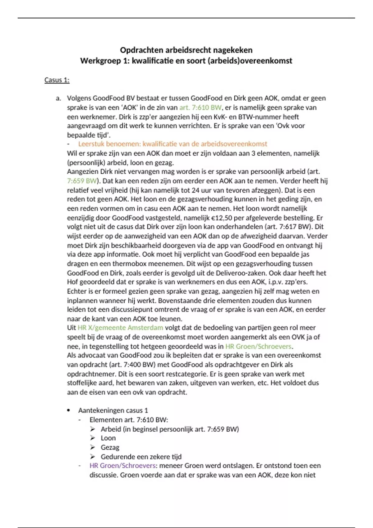 Werkcollege-opdrachten uitwerkingen 2023 Arbeidsrecht (680073-B-6)