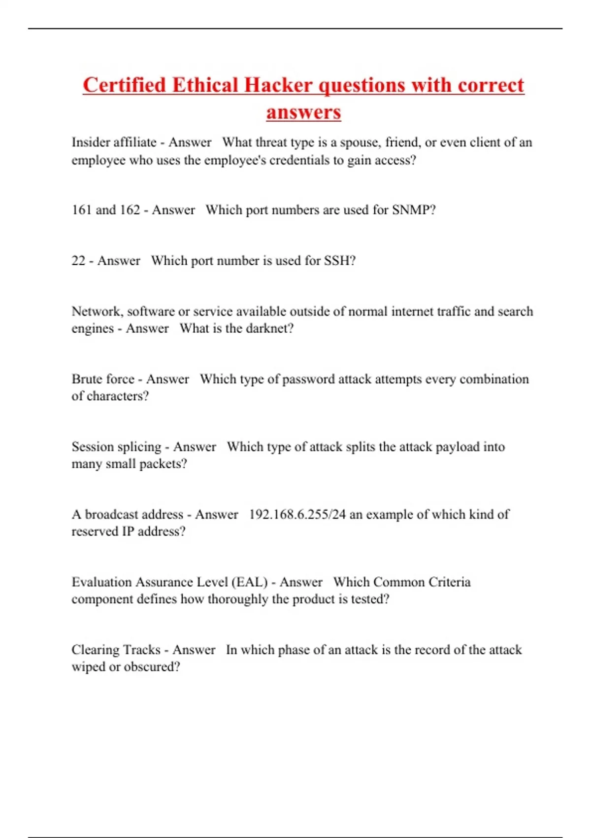 Certified Ethical Hacker questions with correct answers