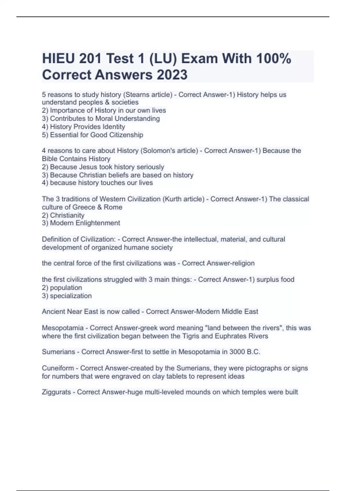 HIEU 201 Test 1 (LU) Exam With 100% Correct Answers 2023