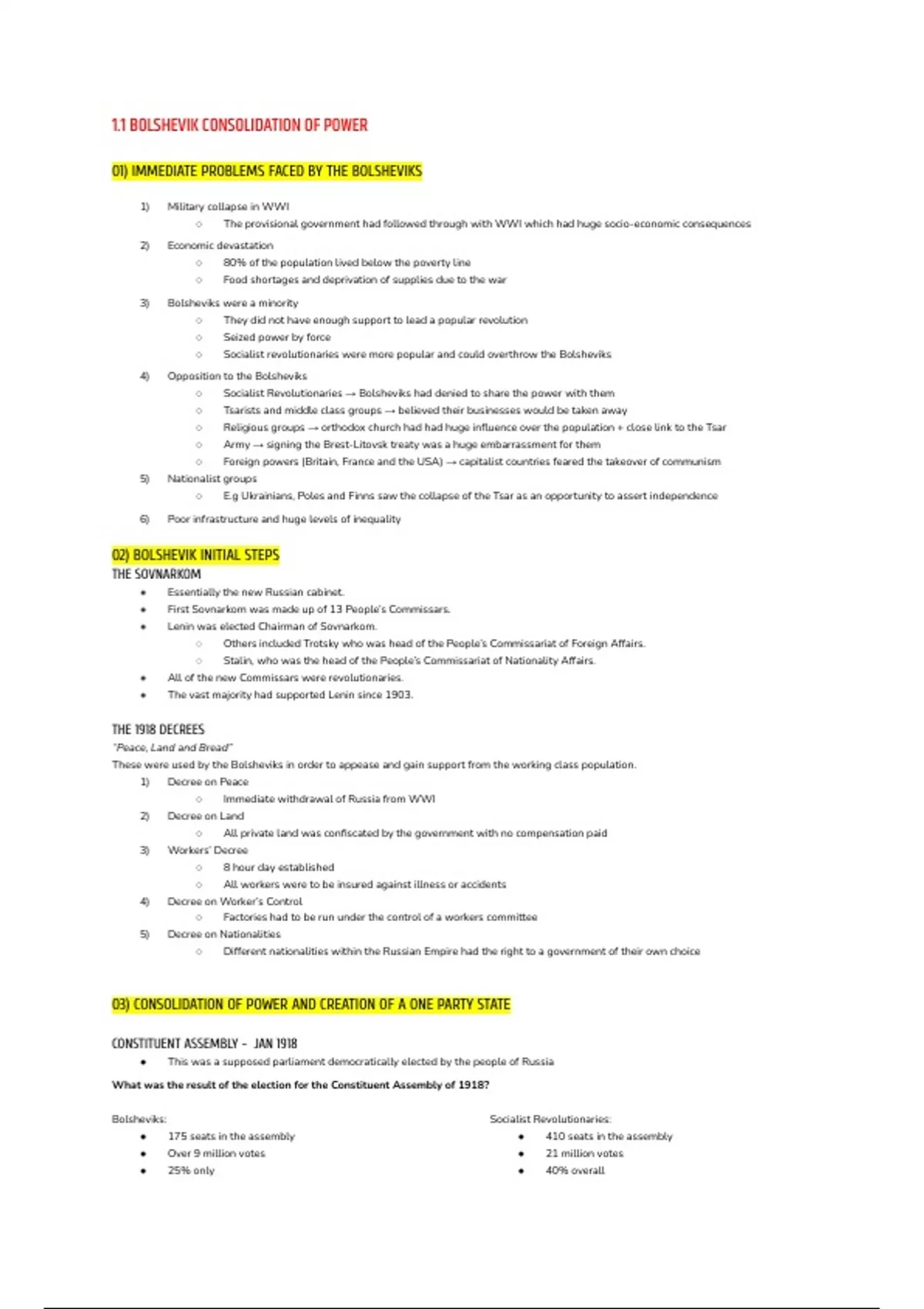 1.1 BOLSHEVIK CONSOLIDATION OF POWER