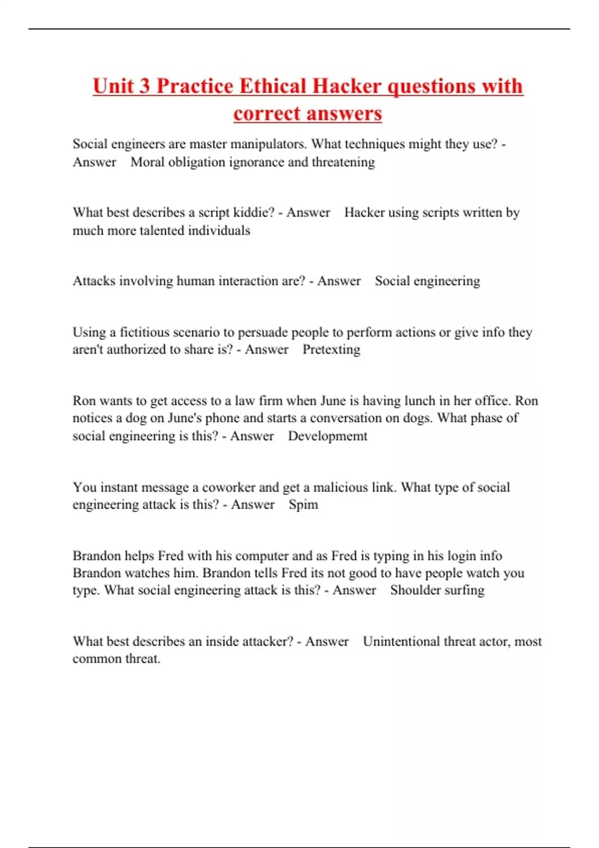 Unit 3 Practice Ethical Hacker questions with correct answers