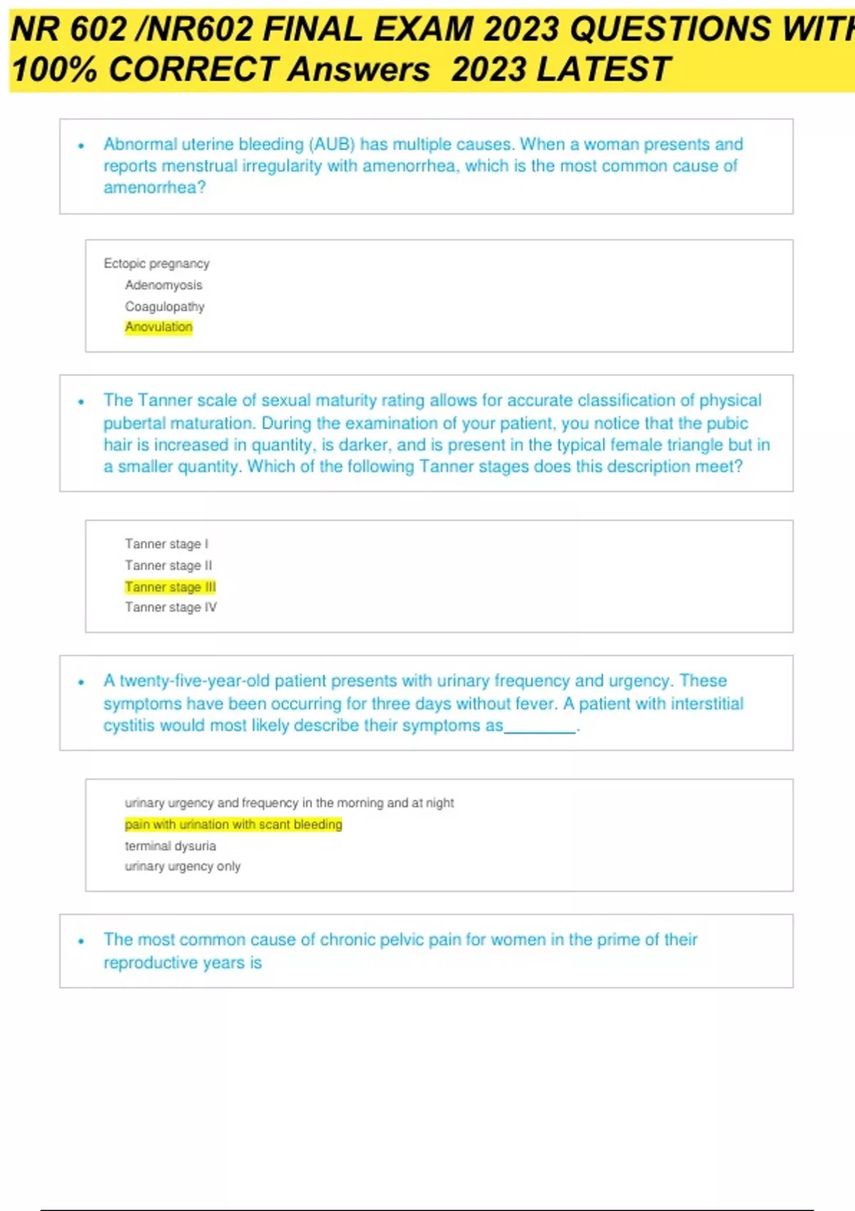 NR 602 /NR602 FINAL EXAM 2023 QUESTIONS WITH 100% CORRECT Answers 2023 LATEST