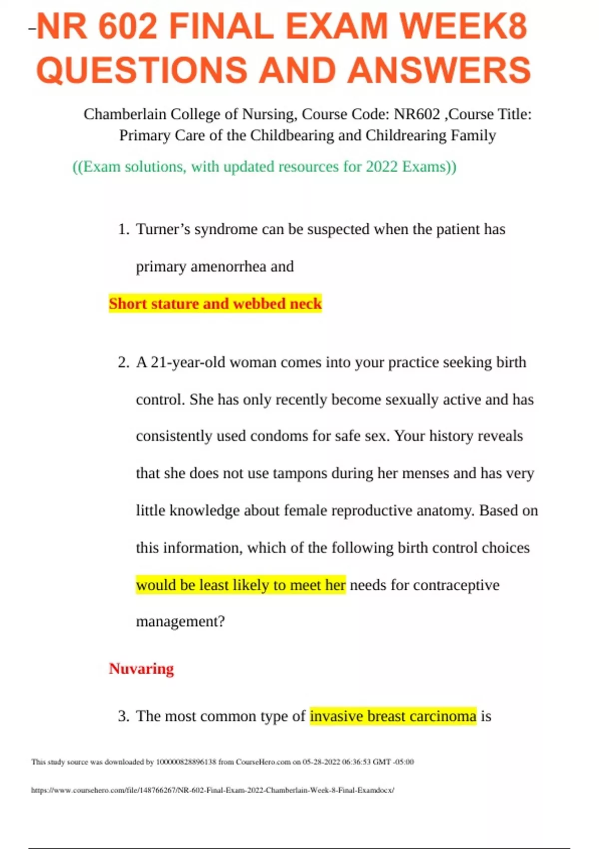 NR602 Final Exam 2023 / NR 602 Final Exam / NR602 Week 8 Final Exam / NR 602 Week 8 Final Exam: Chamberlain College of Nursing |100% Correct Q & A