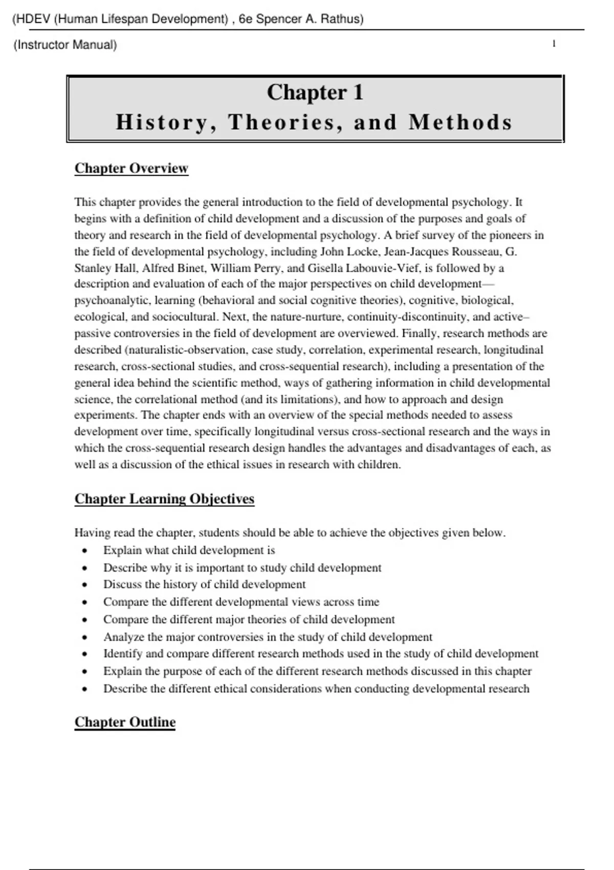 HDEV (Human Lifespan Development) , 6e Spencer A. Rathus (Instructor Manual) HDEV (Human Lifespan Development) , 6e Spencer A. Rathus (Instructor Manual)