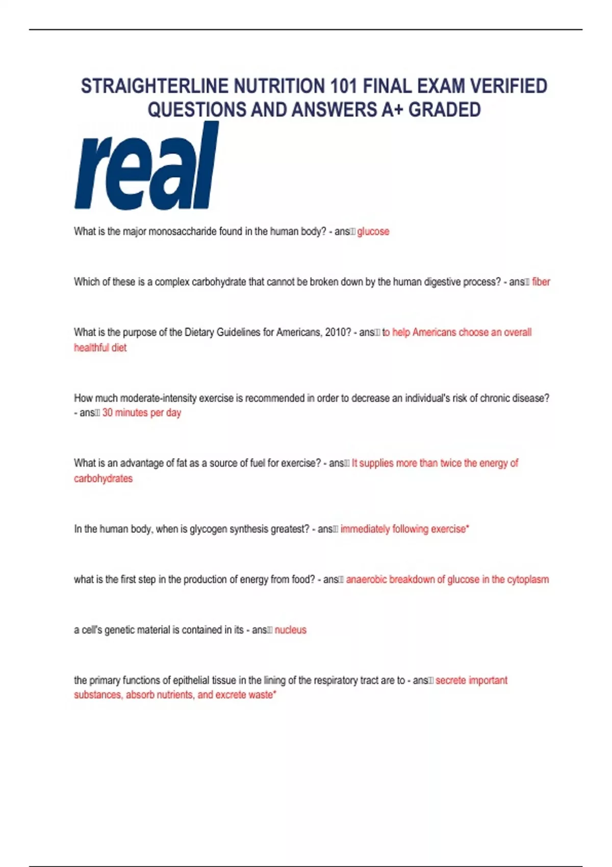 STRAIGHTERLINE NUTRITION 101 FINAL EXAM VERIFIED QUESTIONS AND ANSWERS A+ GRADED