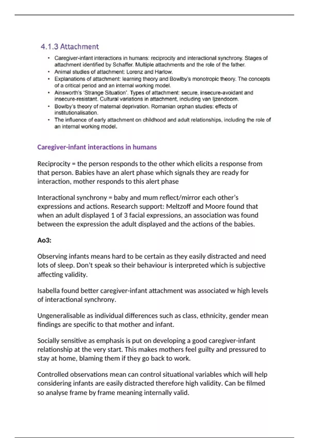 Psychology attachment notes that gained me an A* at A Level. I created this using textbooks, mark schemes, class notes and my own further research to provide a comprehensive set of notes. This is formatted according to the AQA psychology specification, where each point is covered, but regardless of the exam board, it provides a detailed set of notes including AO1, AO2 and AO3 points!