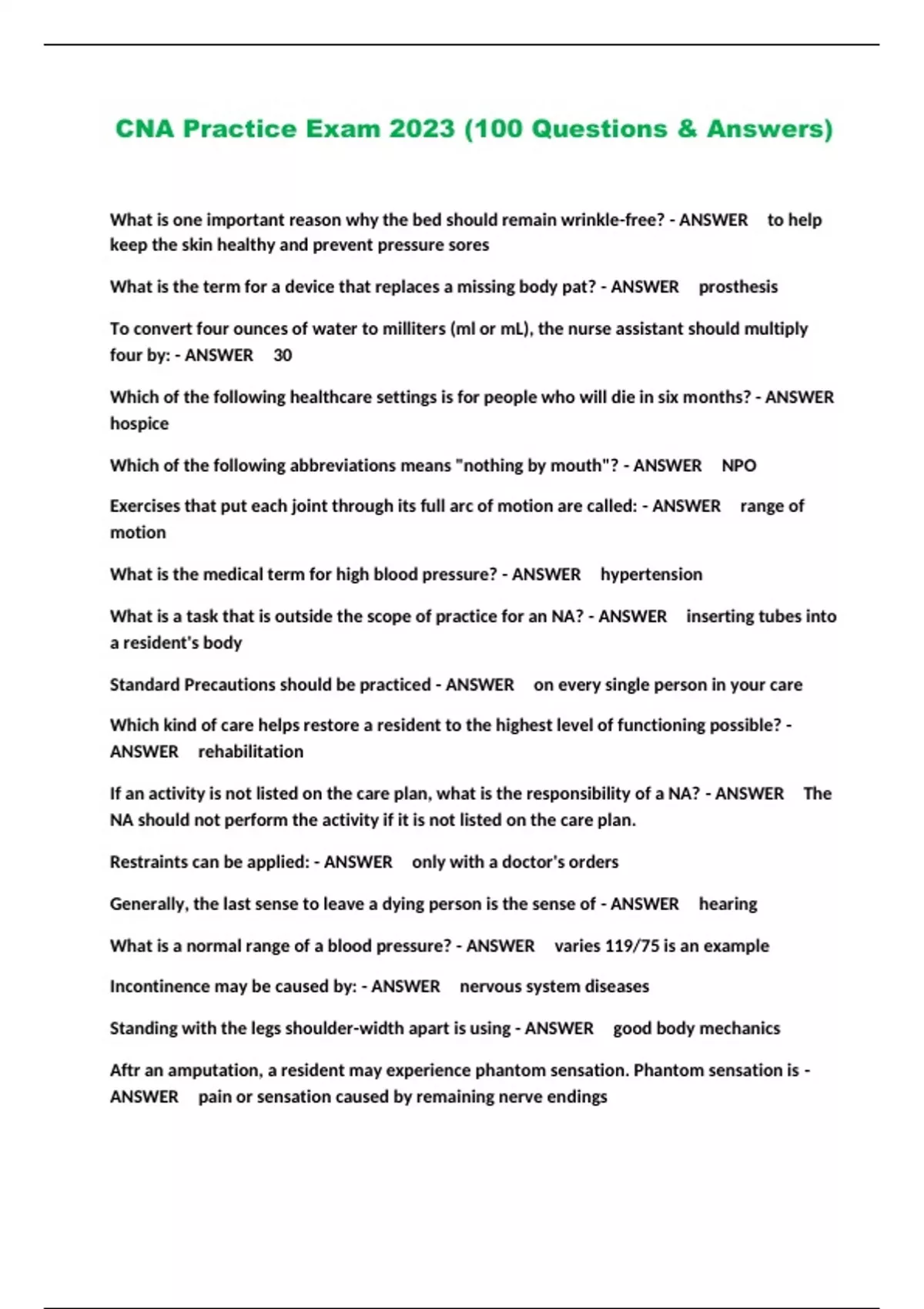 CNA Practice Exam 2023 (100 Questions & Answers)...