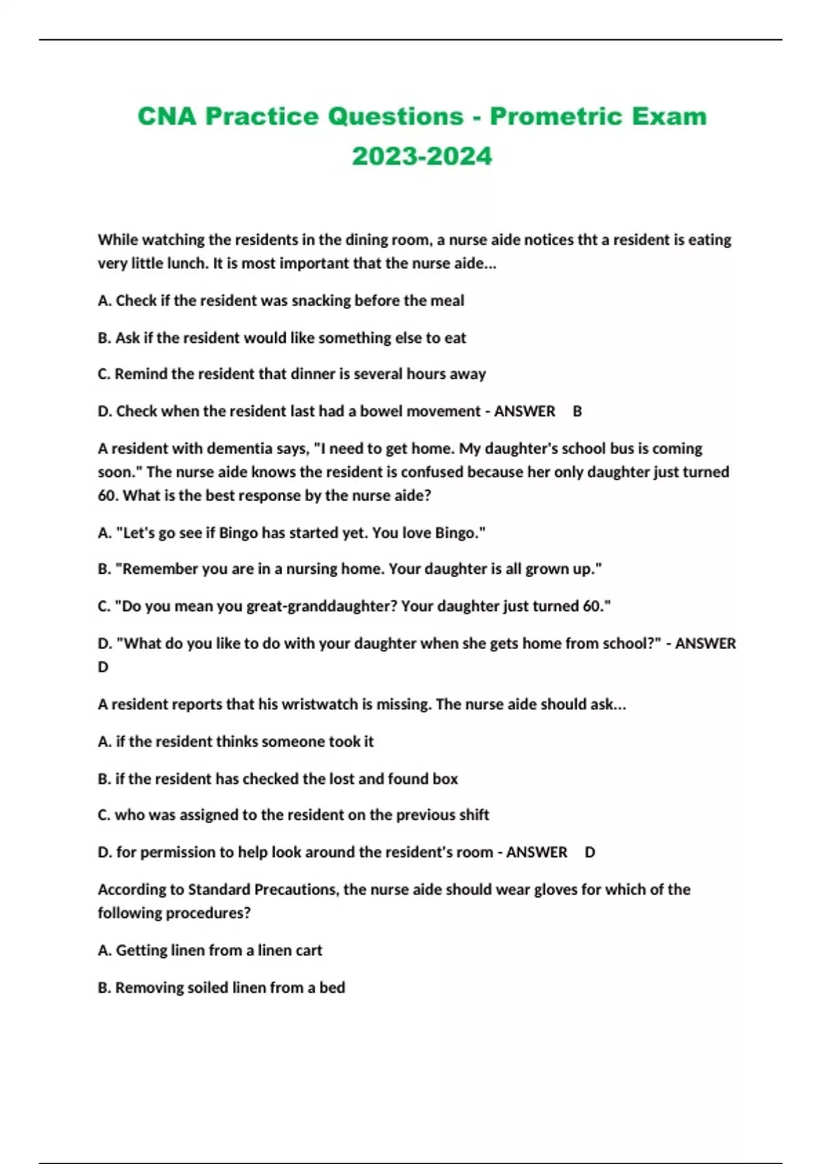 CNA Practice Questions - Prometric Exam ...