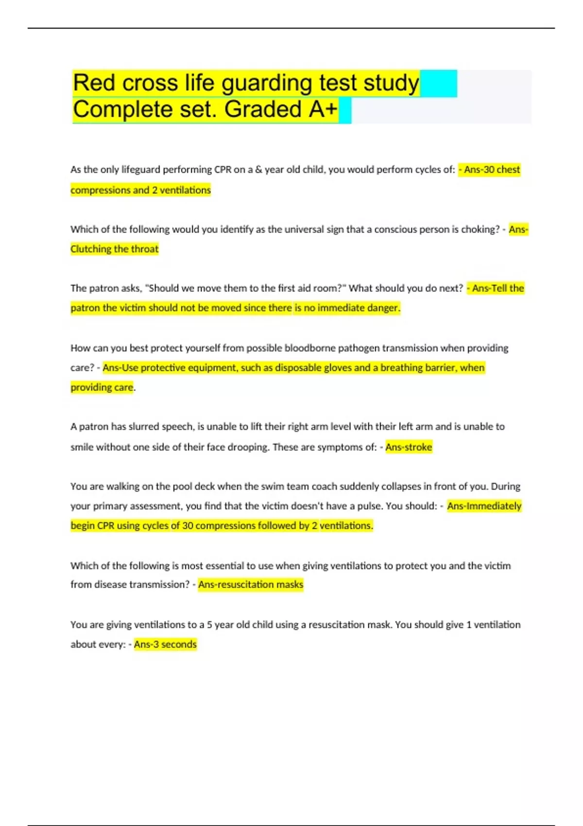 Red cross life guarding test study Complete set. Graded A+| 2023/2024 update
