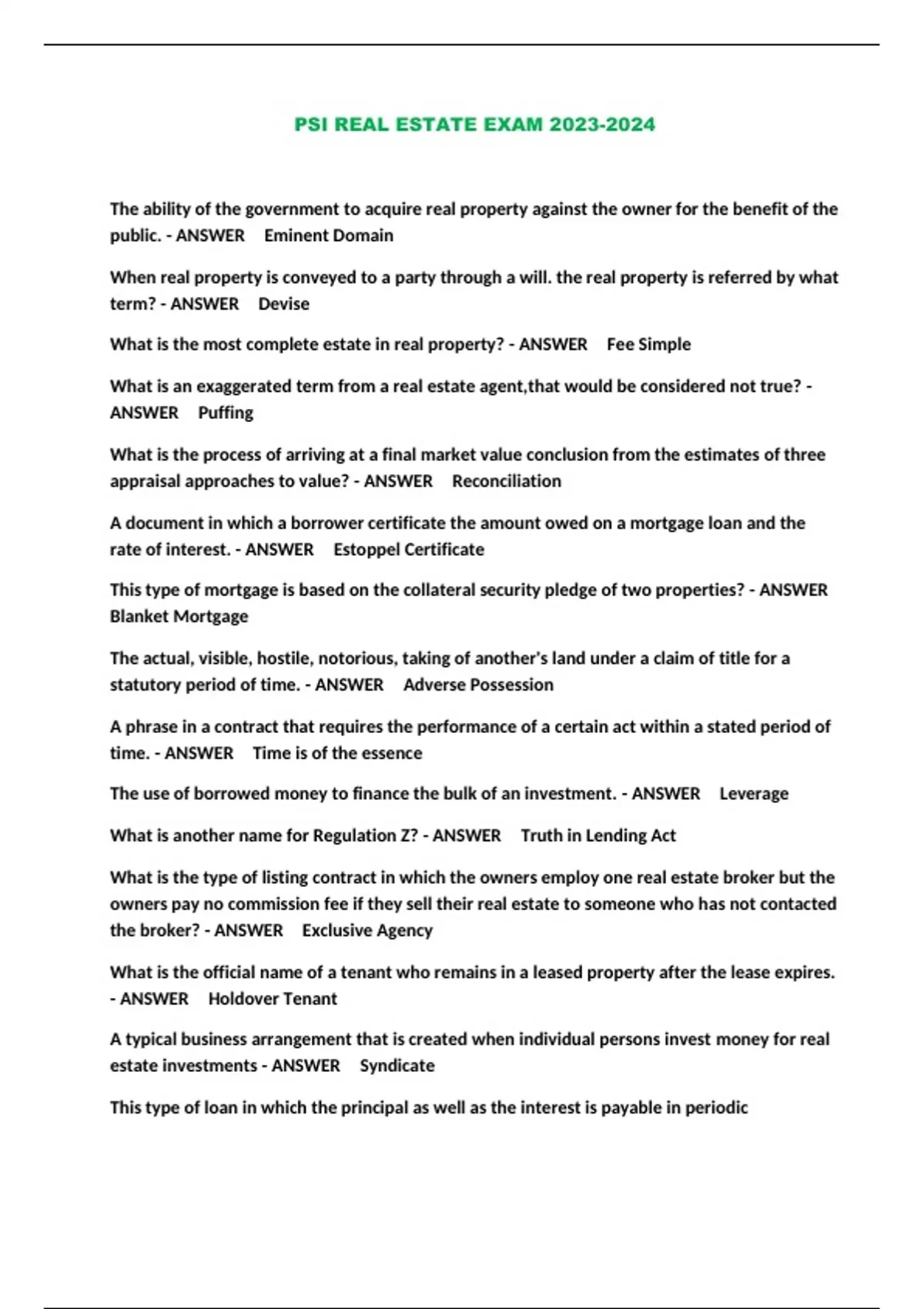 PSI REAL ESTATE EXAM ...