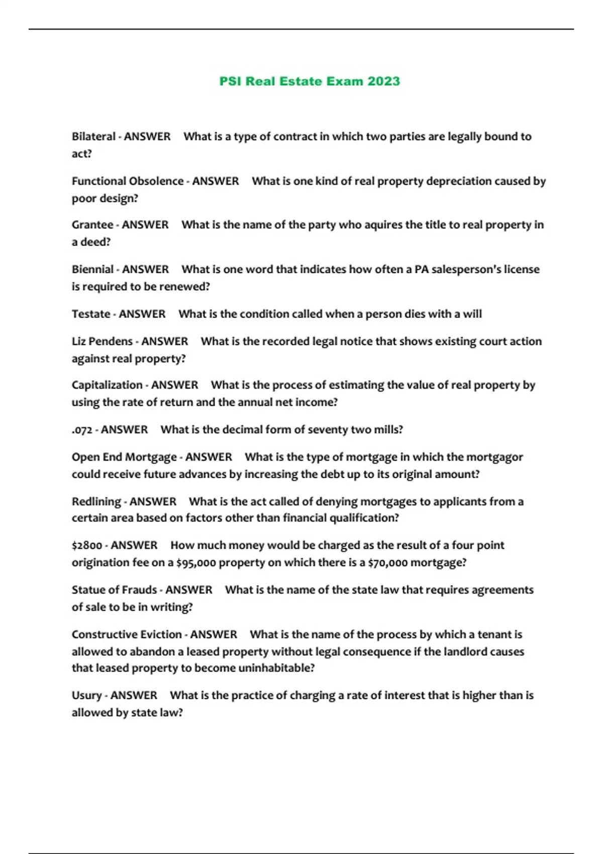 PSI Real Estate Exam 2023...