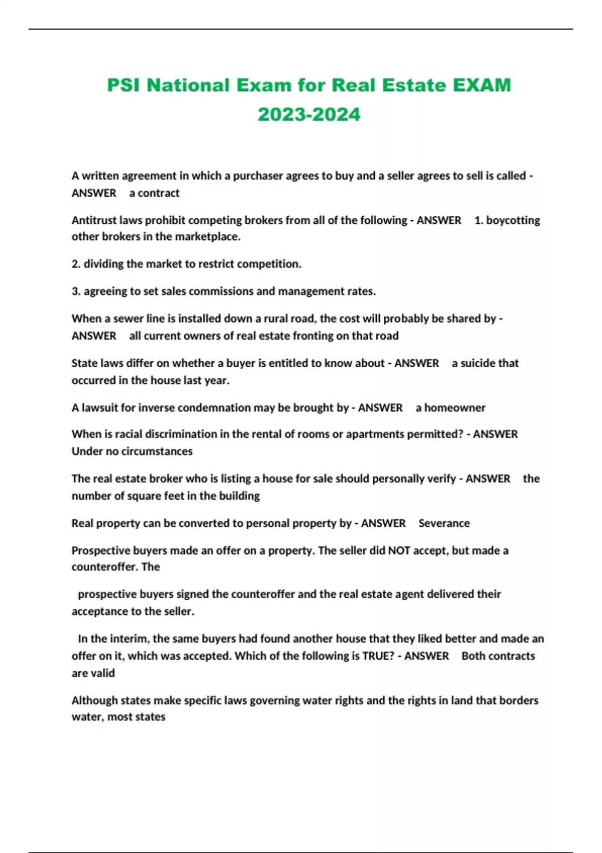 PSI National Exam for Real Estate EXAM ...