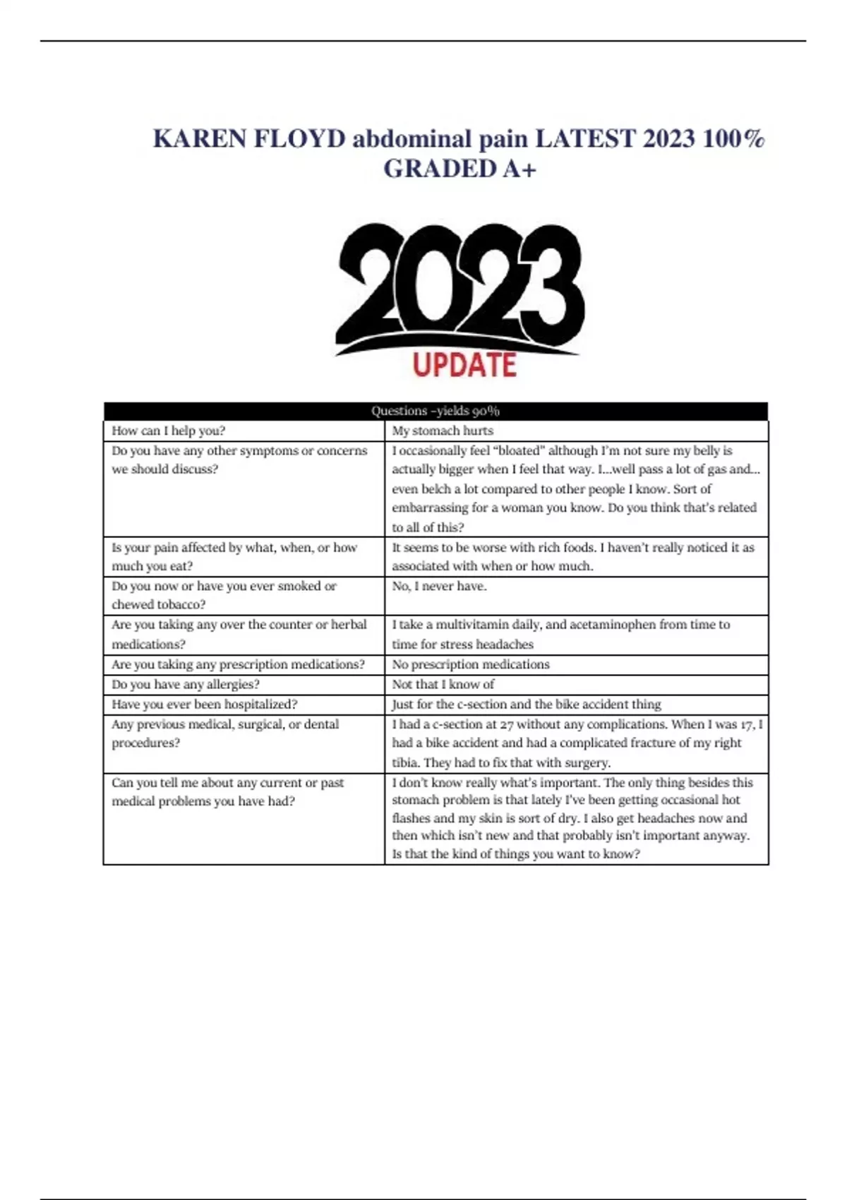 KAREN FLOYD abdominal pain LATEST 2023 100% GRADED A+