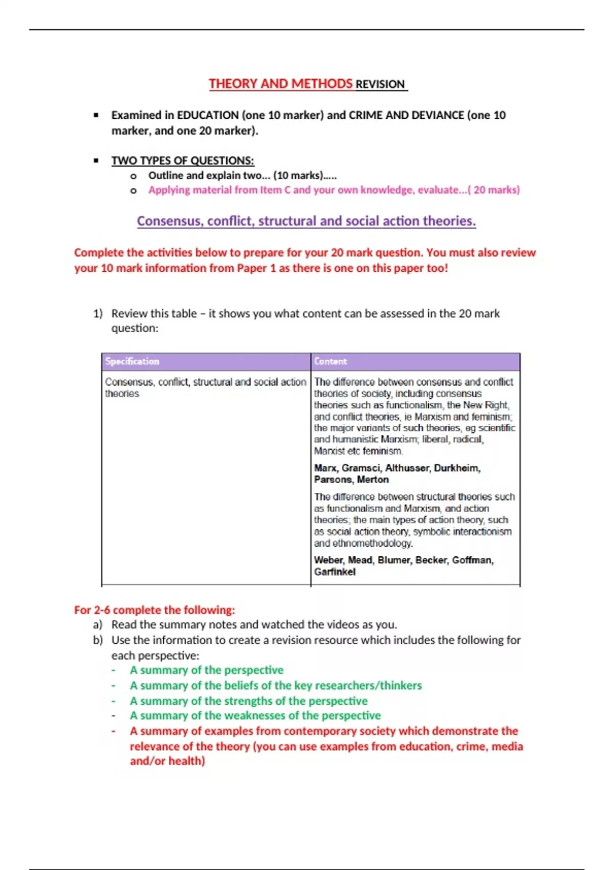 Complete the activities below to prepare for your 20 mark question. You must also review