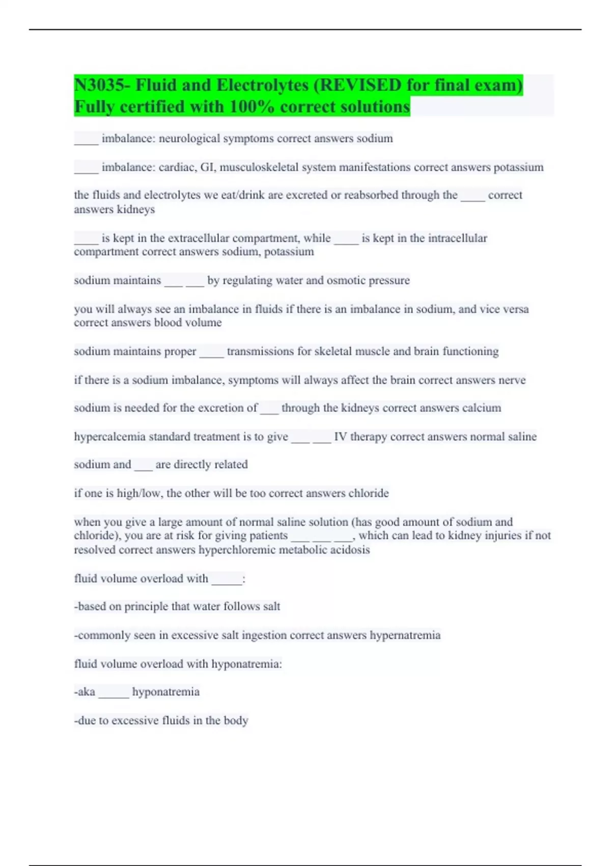 N3035- Fluid and Electrolytes (REVISED for final exam) Fully certified with 100% correct solutions