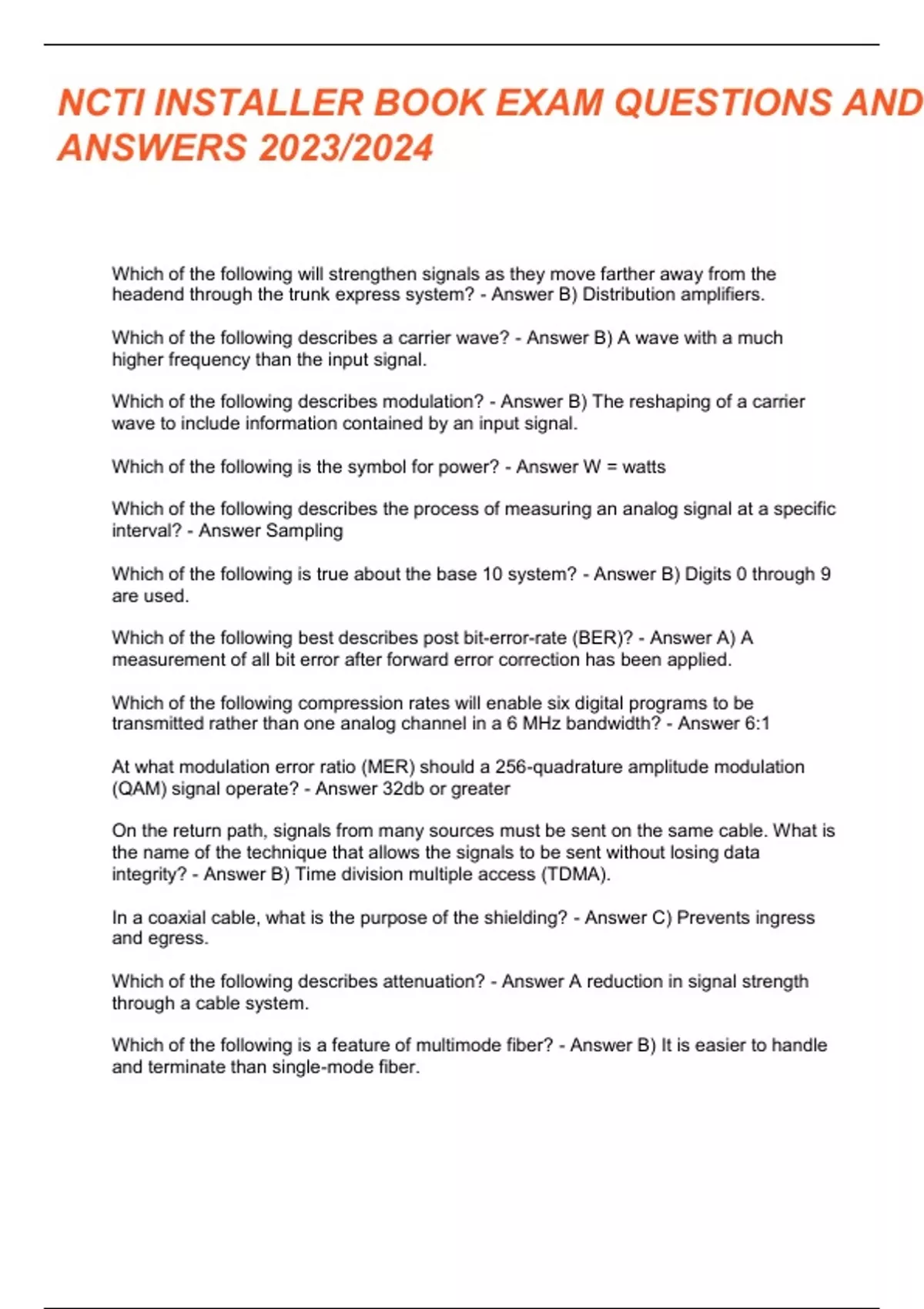 ANSWERSNCTI - Installer Book Exam