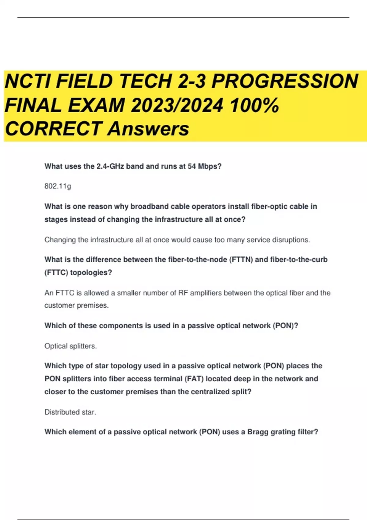 NCTI FIELD TECH 2-3 PROGRESSION FINAL EXAM 2023/2024 100% CORRECT Answers