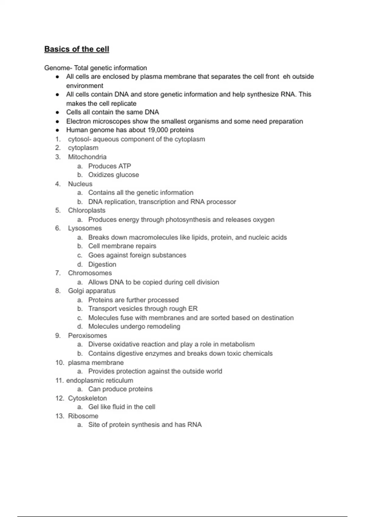 This is a summary of the inside of a cells organelles. I have information about its chemical components. There is in depth and detailed information about proteins structure and function