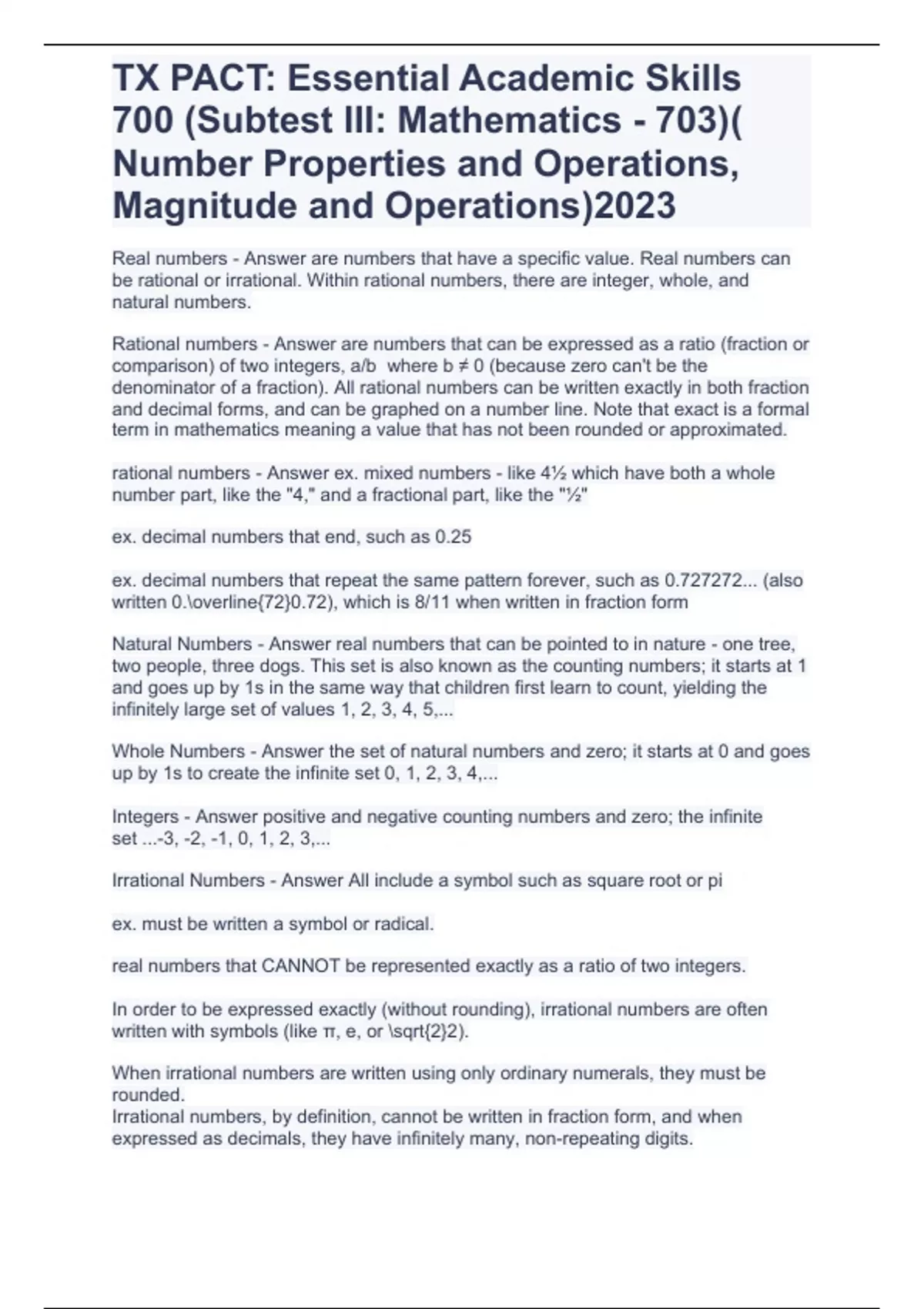 TX PACT: Essential Academic Skills 700 (Subtest III: Mathematics - 703)( Number Properties and Operations, Magnitude and Operations)2023