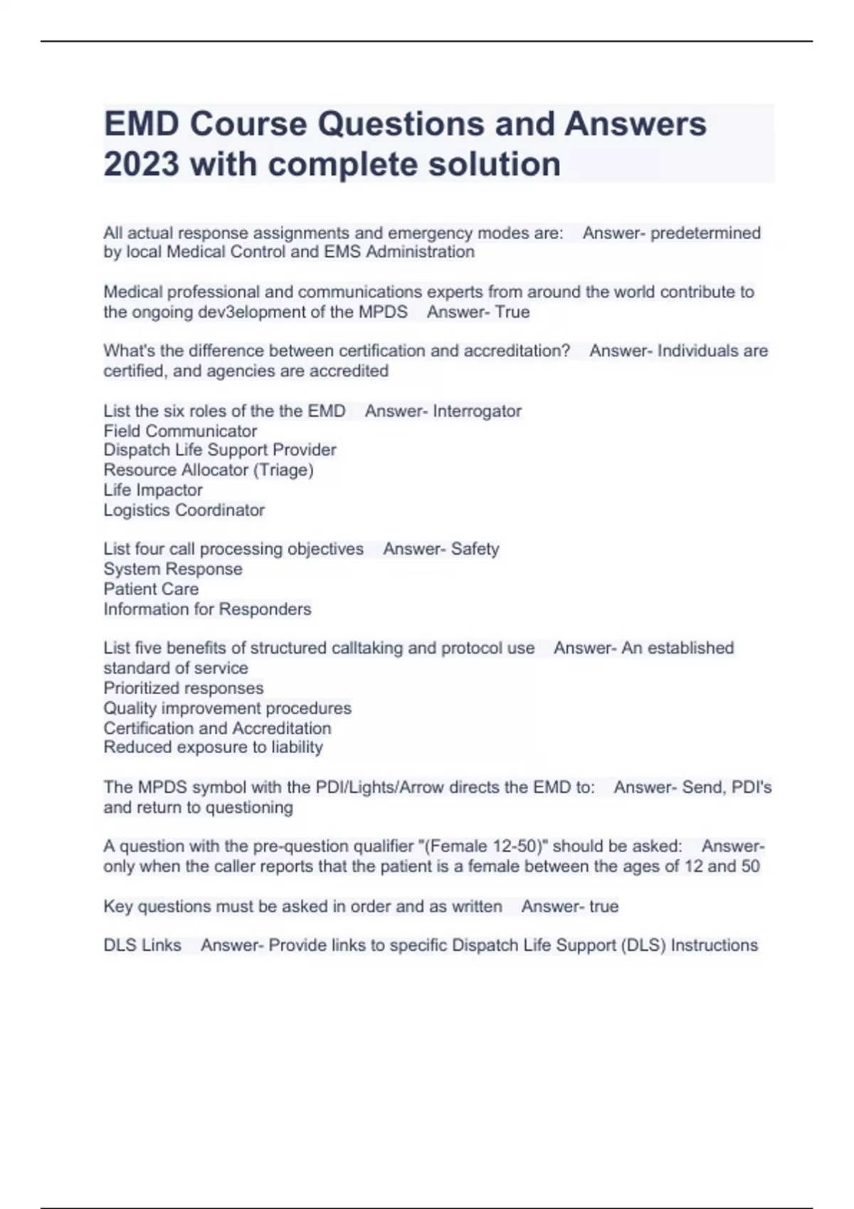 emd course questions and answers 2023 with complet