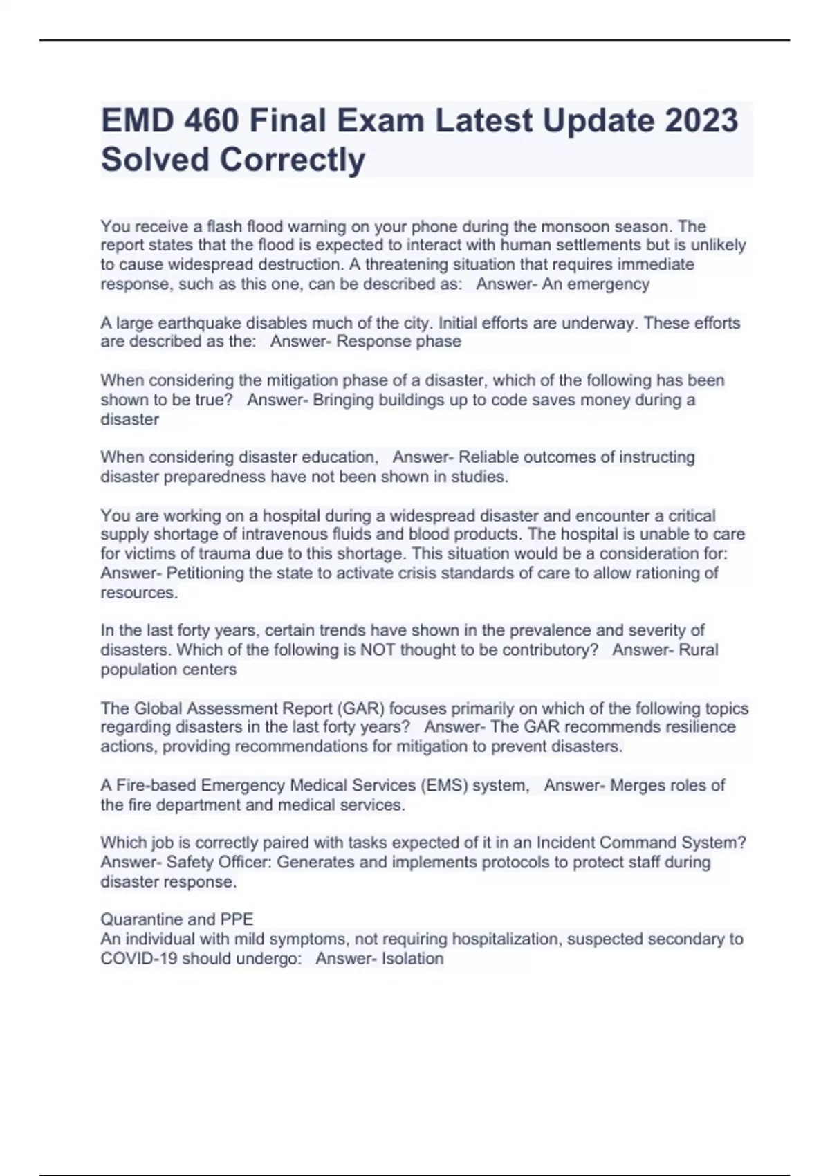 EMD 460 Final Exam Latest Update 2023 Solved Correctly