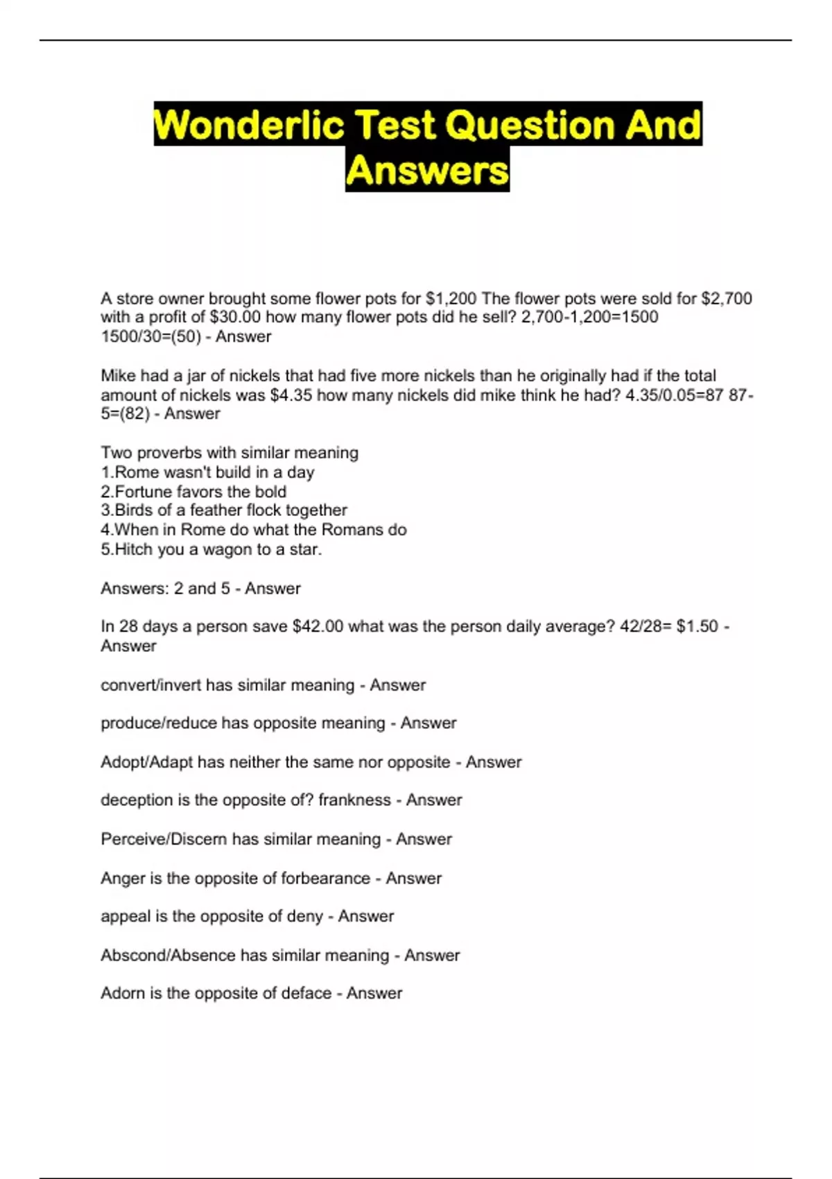 Wonderlic Test Question And Answers...