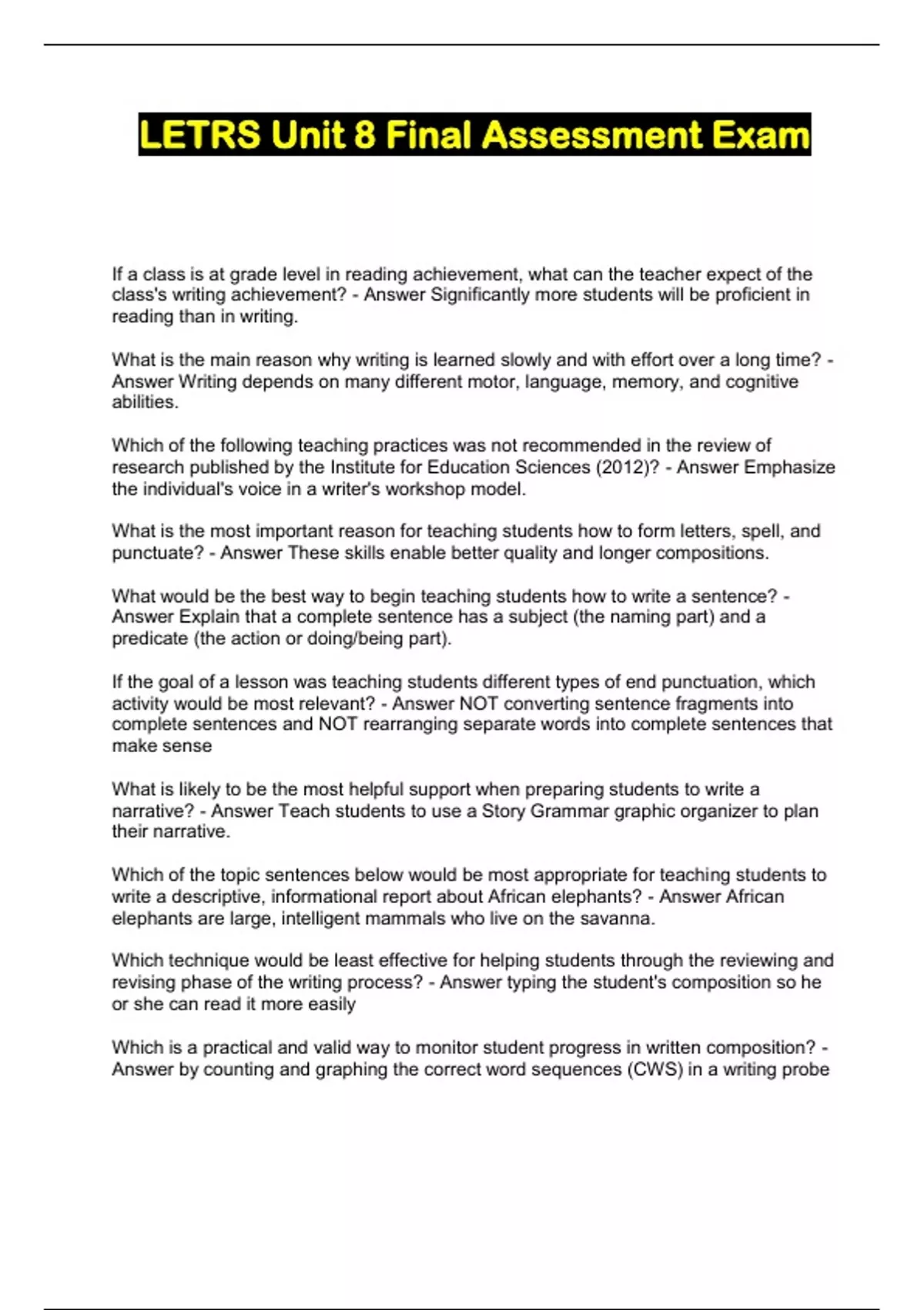 LETRS Unit 8 Final Assessment Exam...