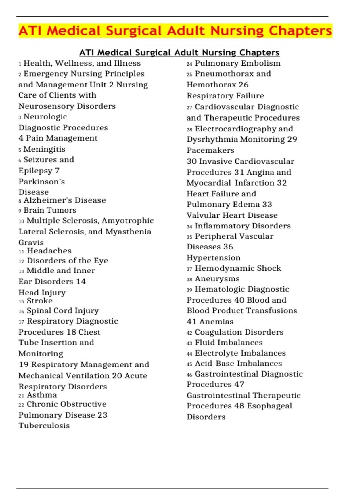 - ATI Medical Surgical Adult Nursing Chapters