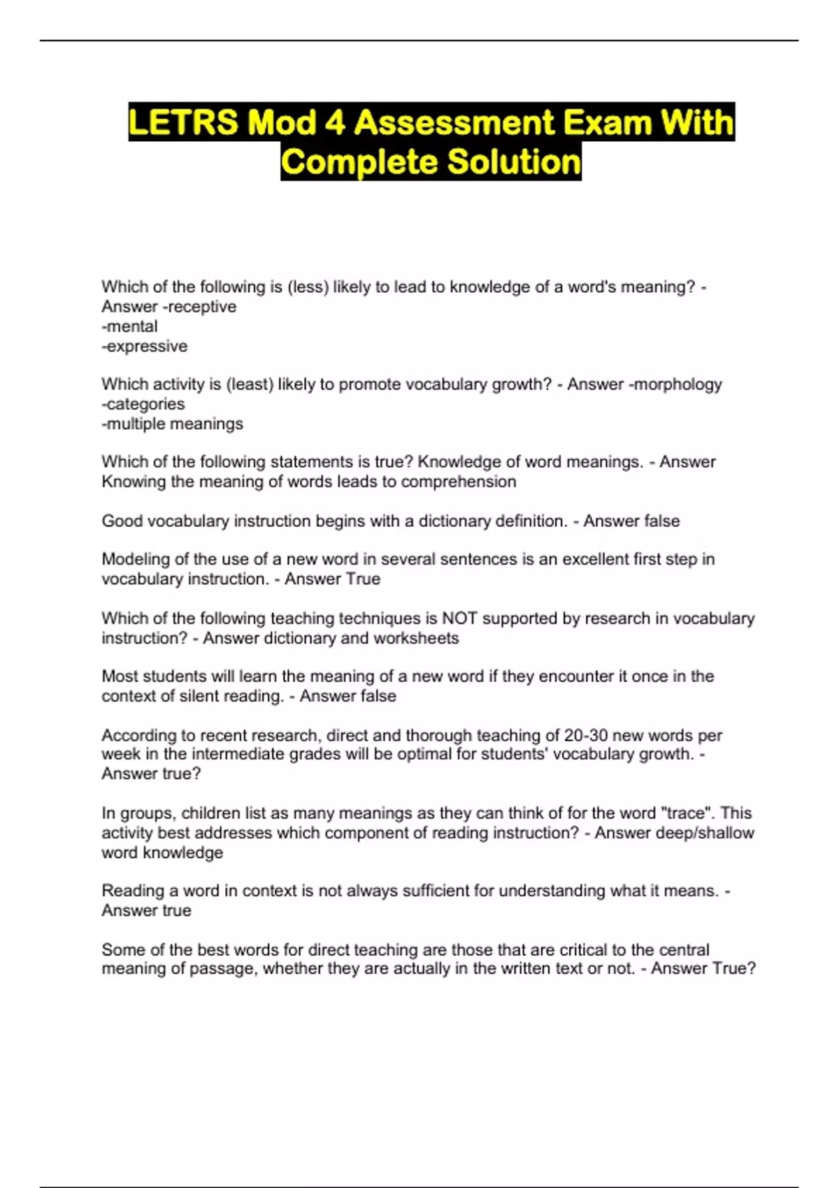 LETRS Mod 4 Assessment Exam With Complete Solution