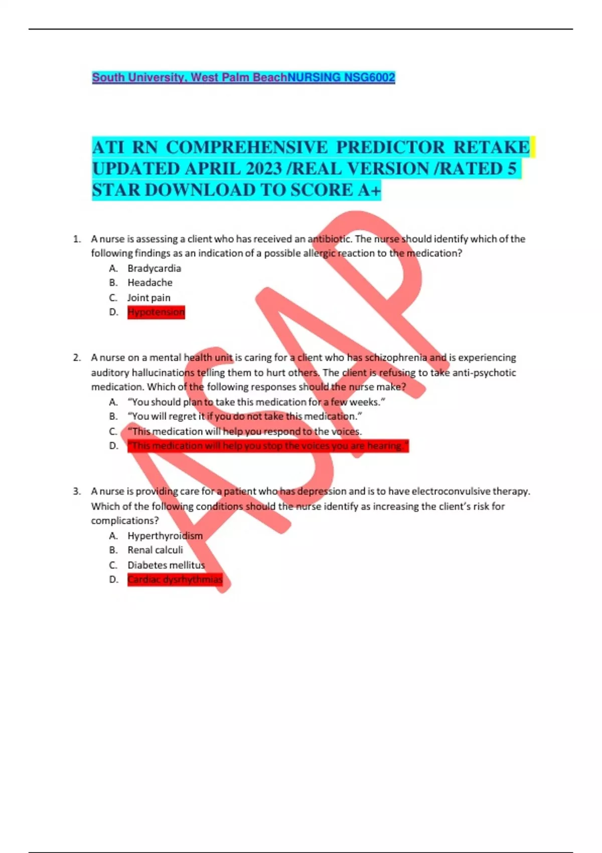 ATI RN COMPREHENSIVE PREDICTOR RETAKE UPDATED APRIL 2023 /REAL VERSION /RATED 5 STAR DOWNLOAD TO SCORE A+