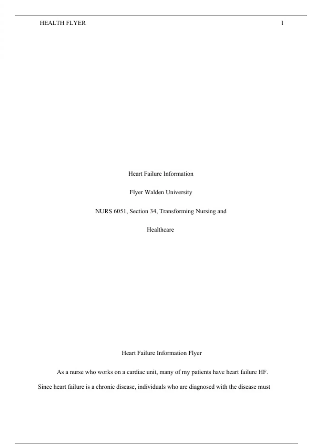 NURS 6051 Week 11 Assignment: Application - Health Information Flyer