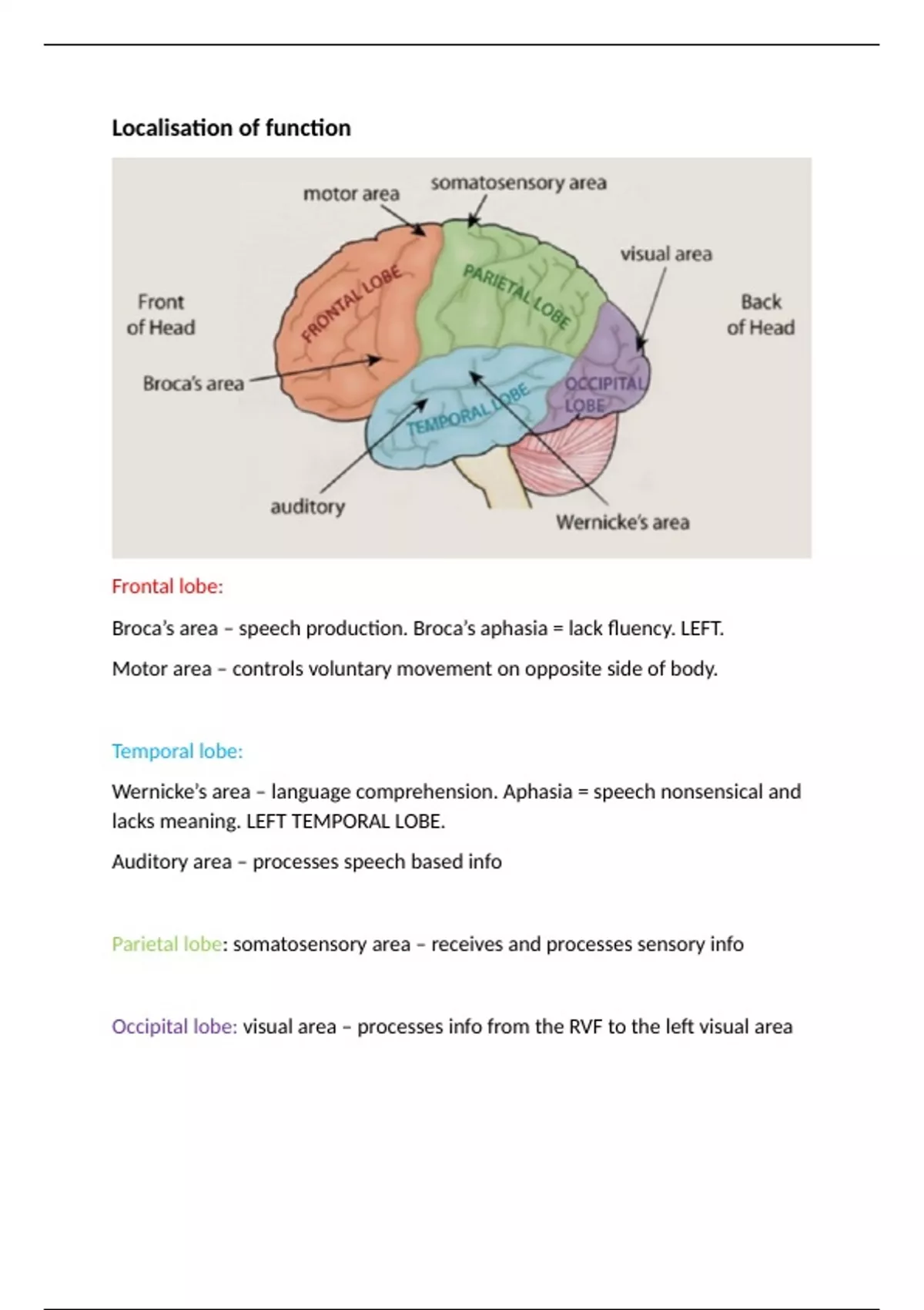 Summary Biopsych Localisation of function and lateralisation (AQA)