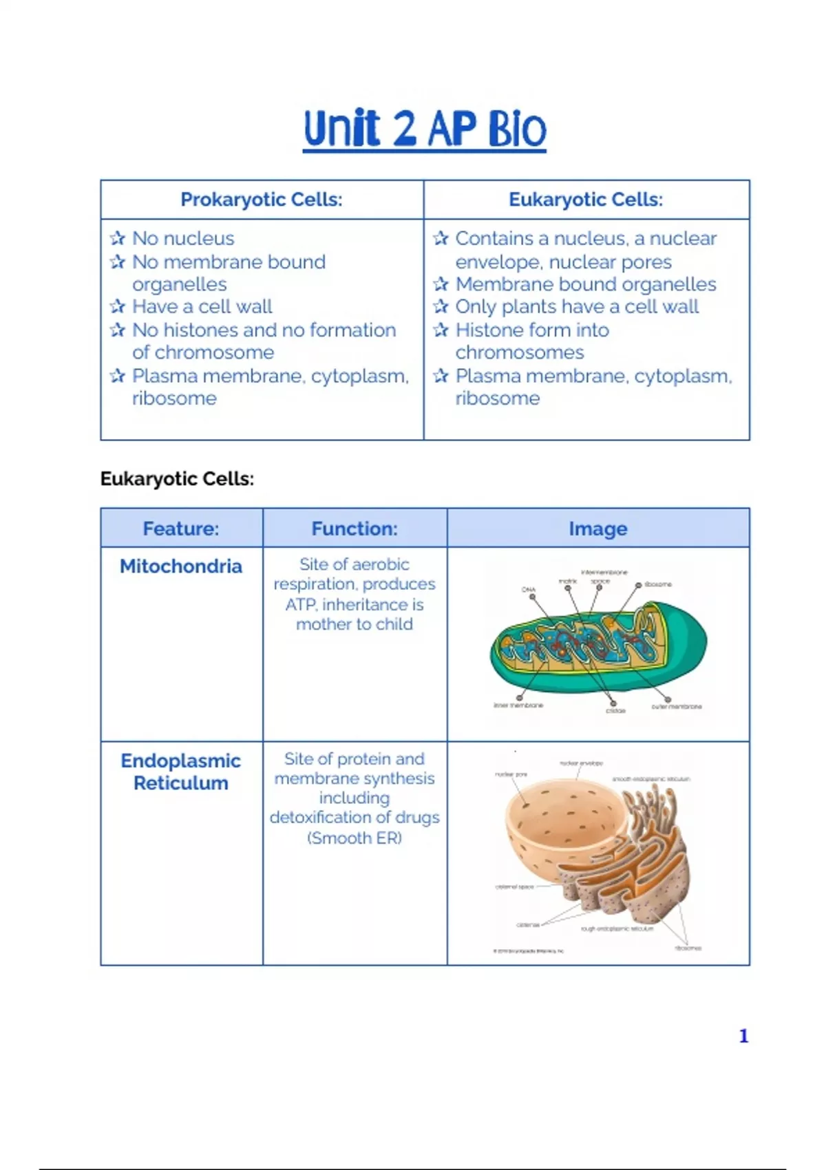 AP Biology Unit 2 Study Guide featuring cell structure, osmosis, passive/active transport, and prokaryotic vs eukaryotic cells.