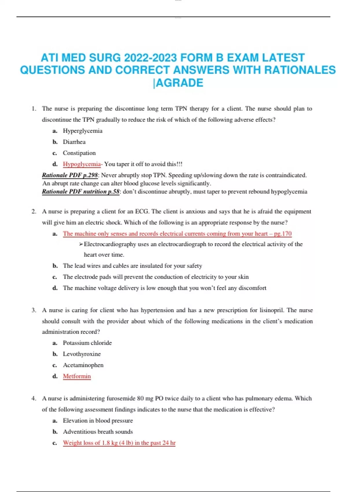 ATI MED SURG FORM B EXAM LATEST QUESTIONS AND CORRECT ANSWERS WITH RATIONALES |AGRADE