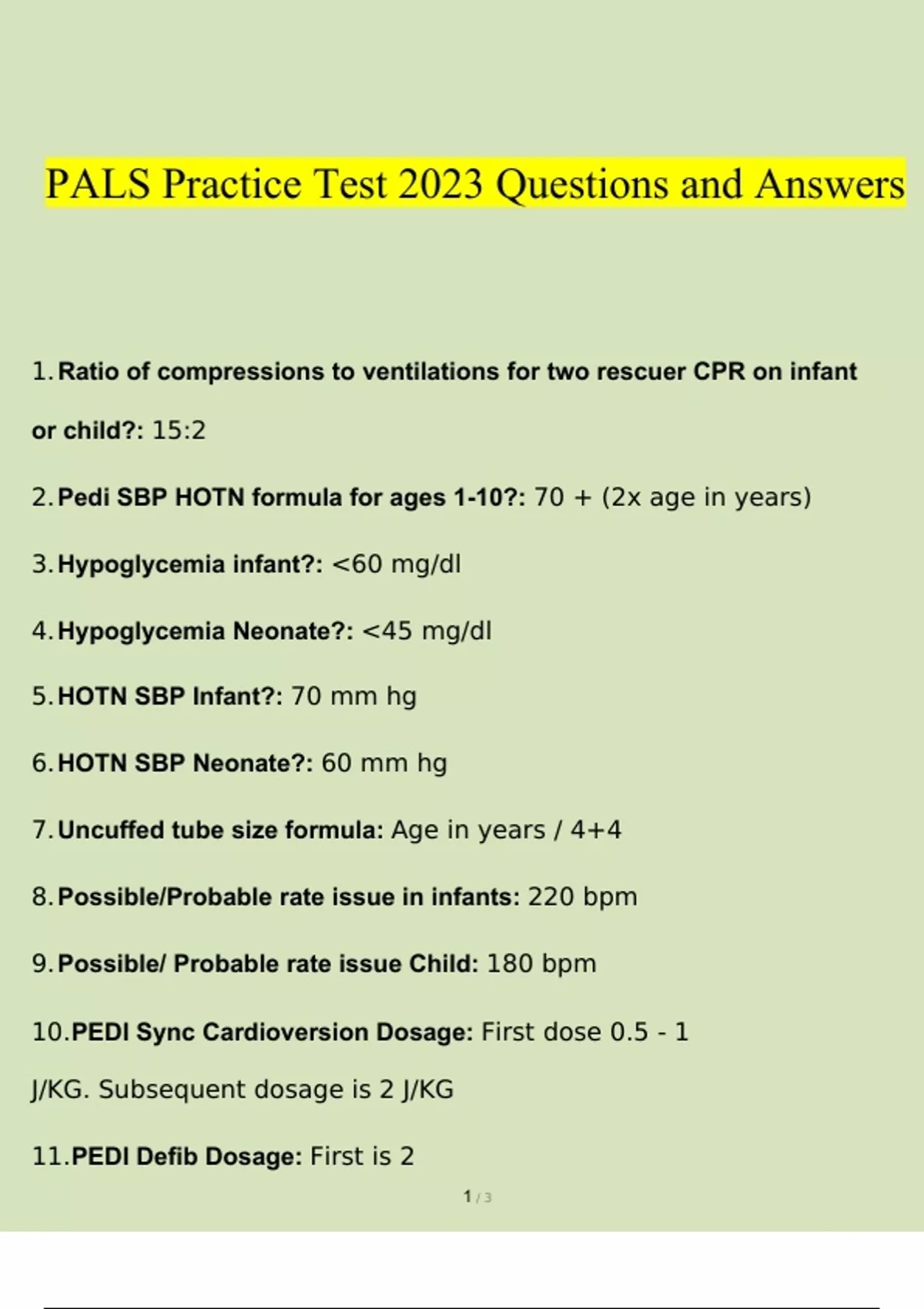 PALS Practice Test 2023 Questions and Answers (100% Verified Answers by Expert)