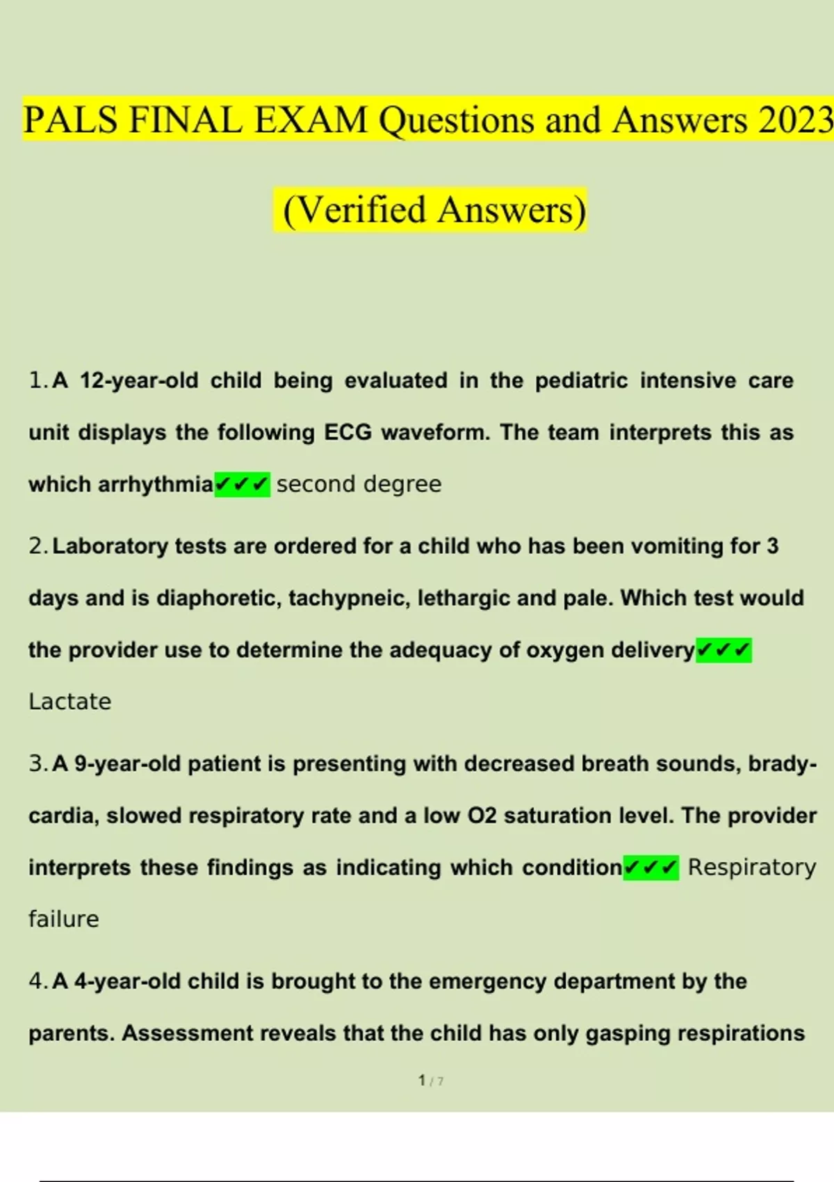 PALS FINAL EXAM Questions and Answers 2023