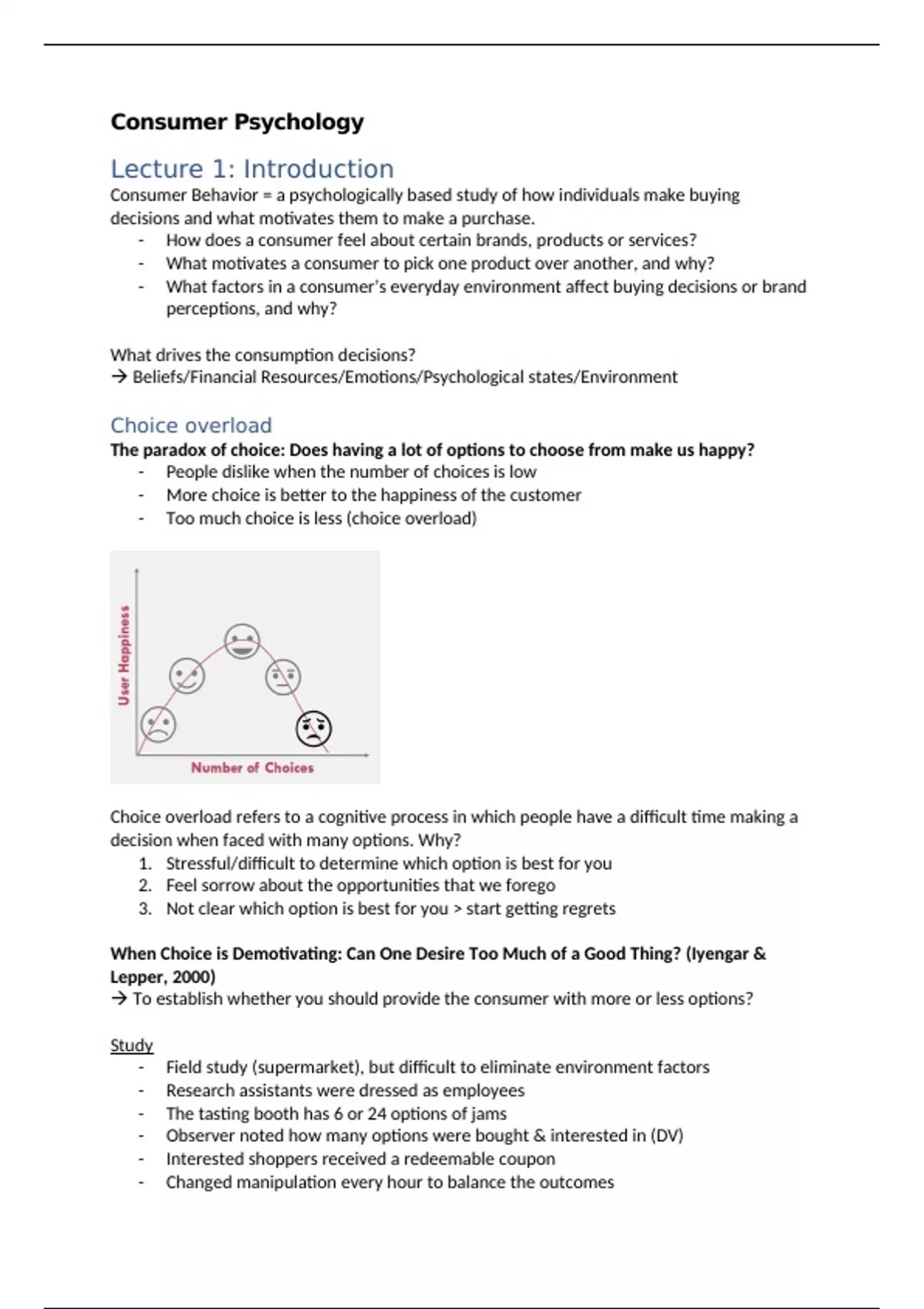 De samenvatting voor het vak Consumer Psychology, inclusief de mandatory readings en figuren.