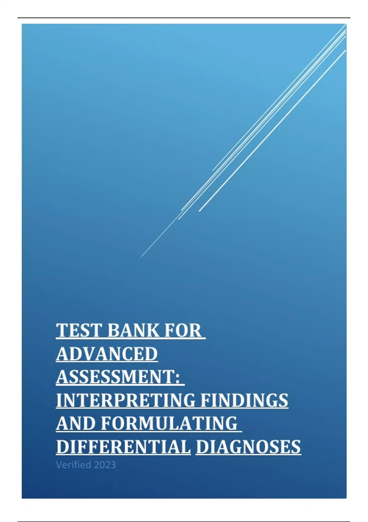 TEST BANK FOR ADVANCED ASSESSMENT: INTERPRETING FINDINGS AND FORMULATING DIFFERENTIAL DIAGNOSES