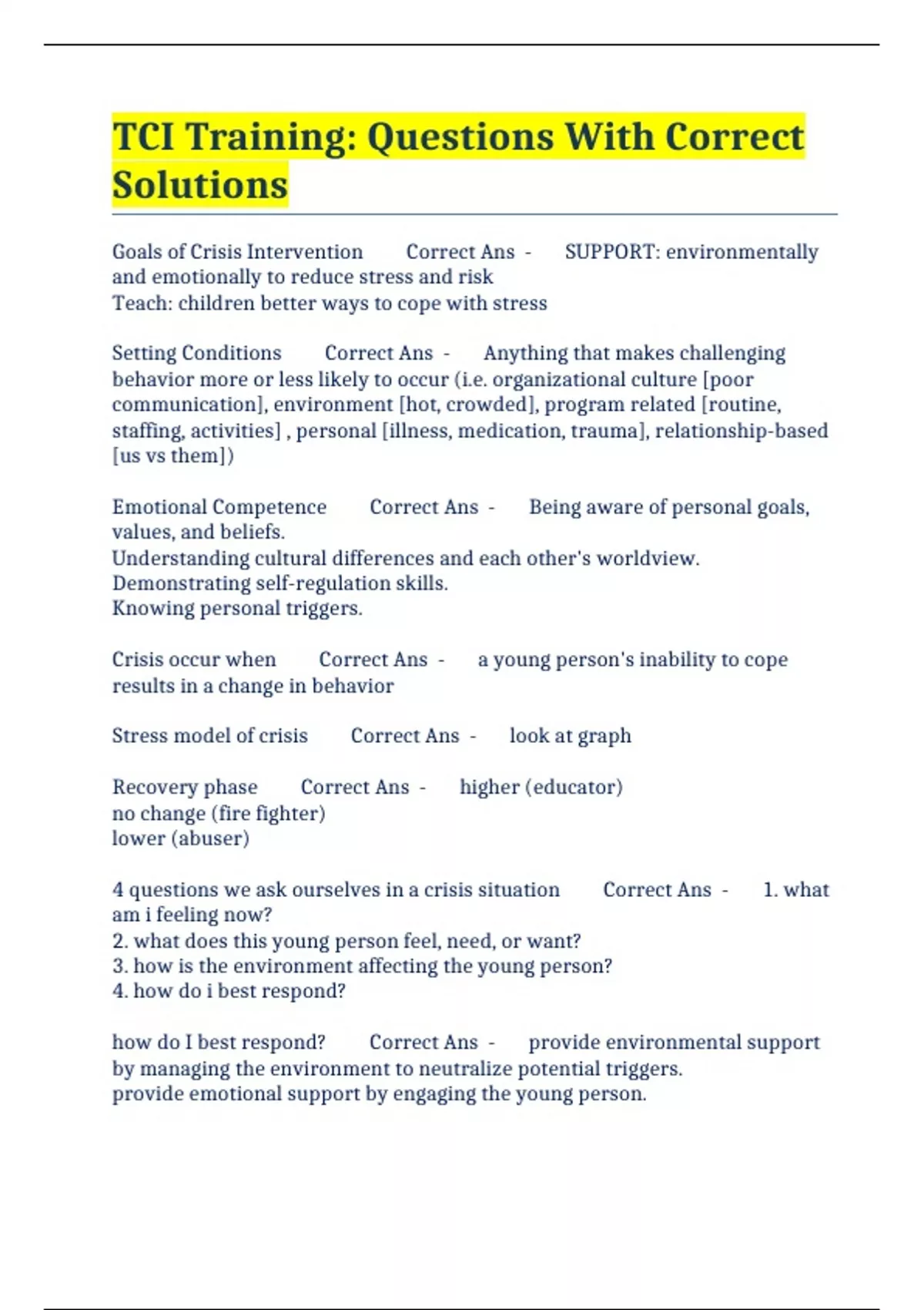 tci training questions with correct solutions