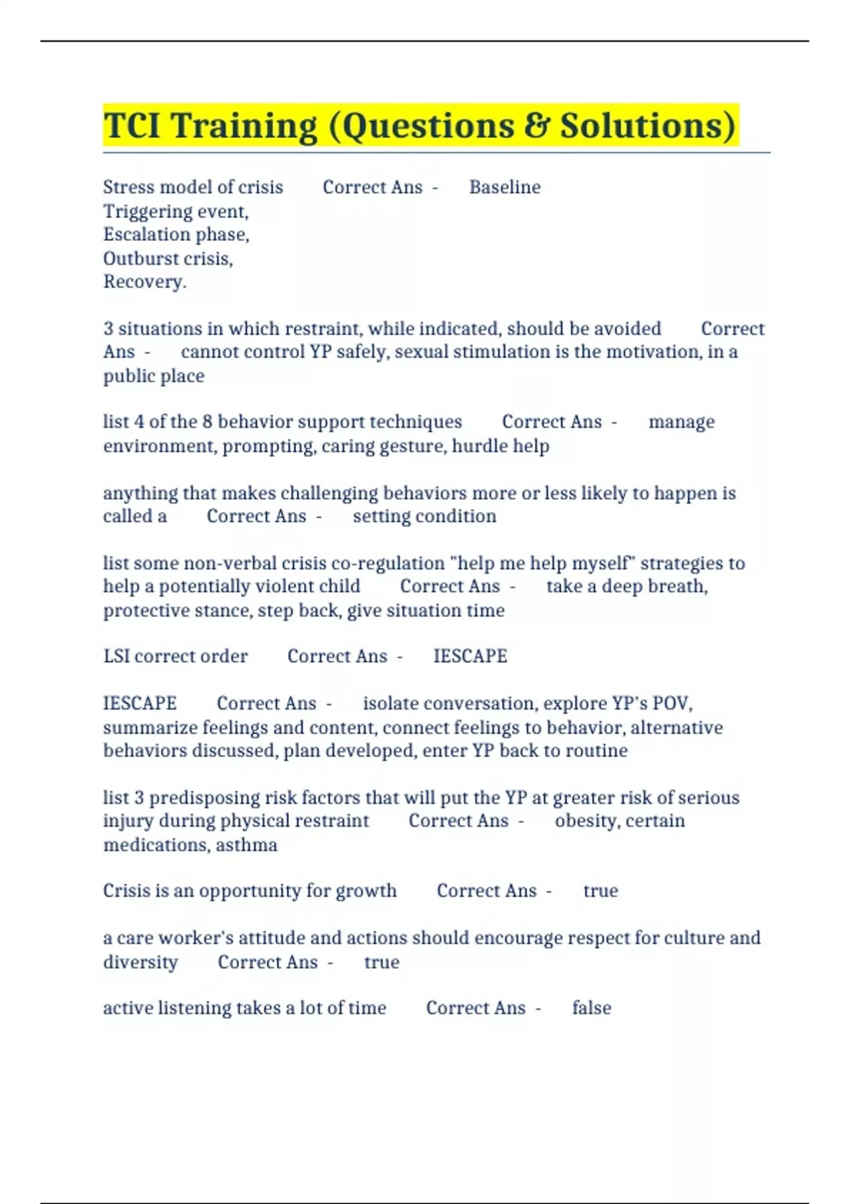 TCI Training (Questions & Solutions)