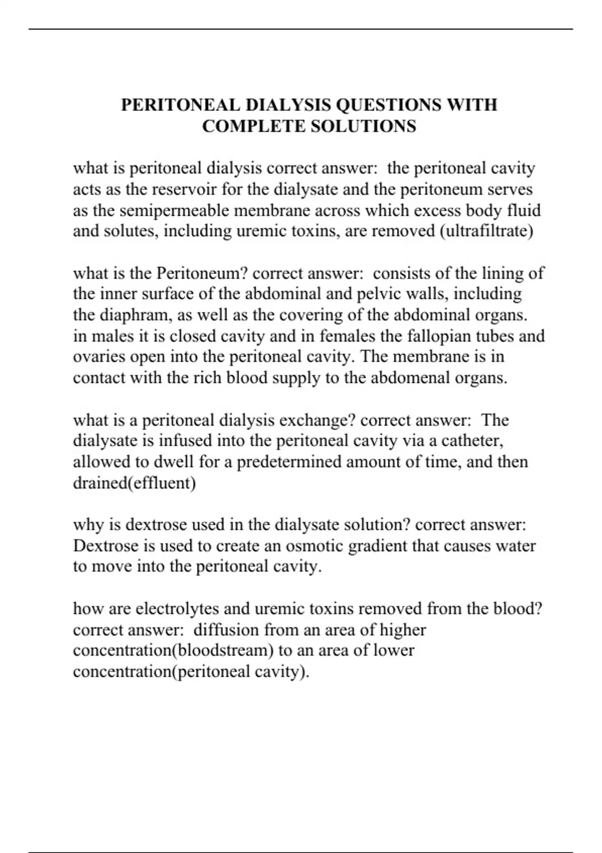 PERITONEAL DIALYSIS QUESTIONS WITH COMPLETE SOLUTIONS