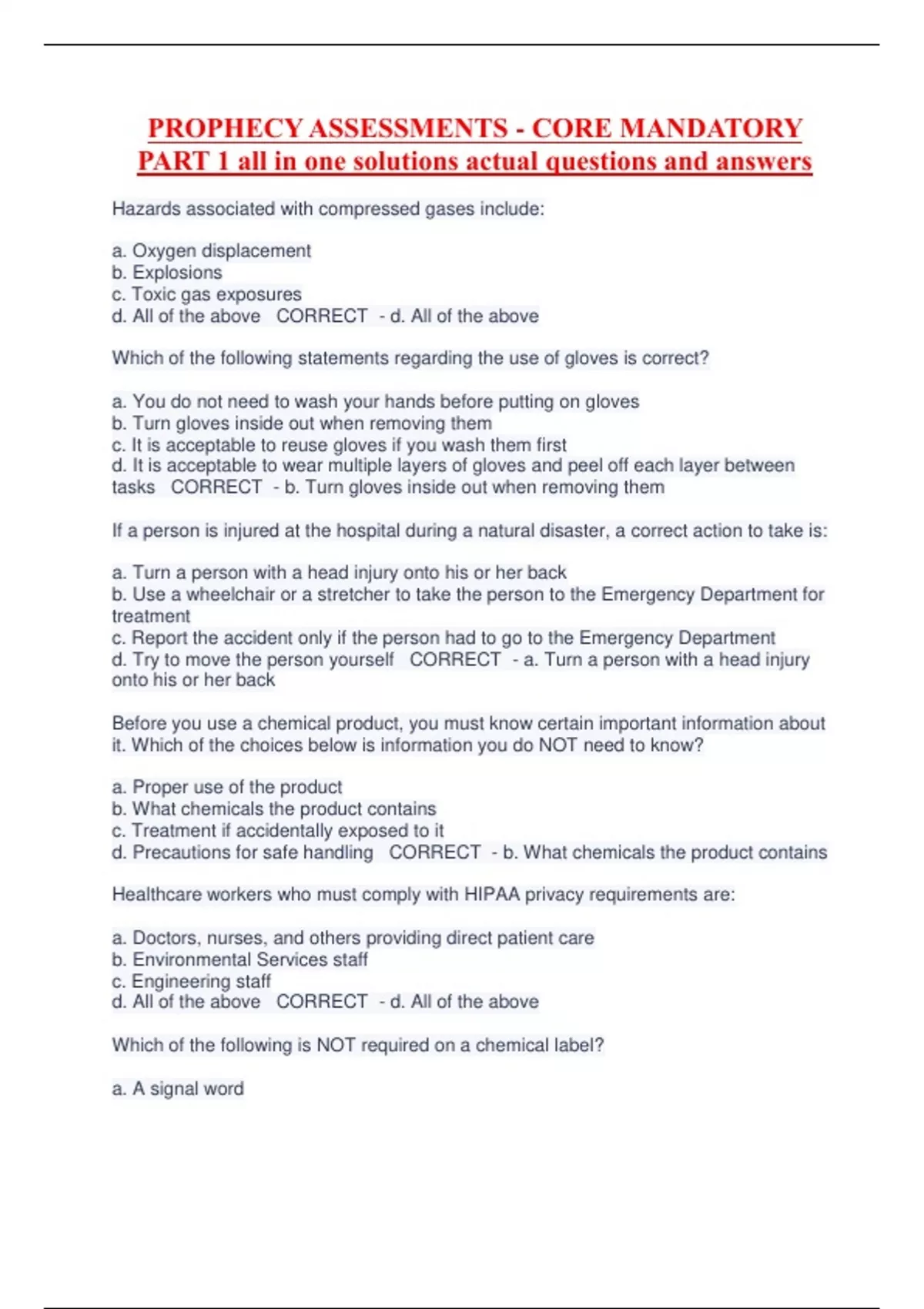 PROPHECY ASSESSMENTS - CORE MANDATORY PART 1 all in one solutions actual questions and answers PROPHECY ASSESSMENTS - CORE MANDATORY PART 1 all in one solutions actual questions and answers